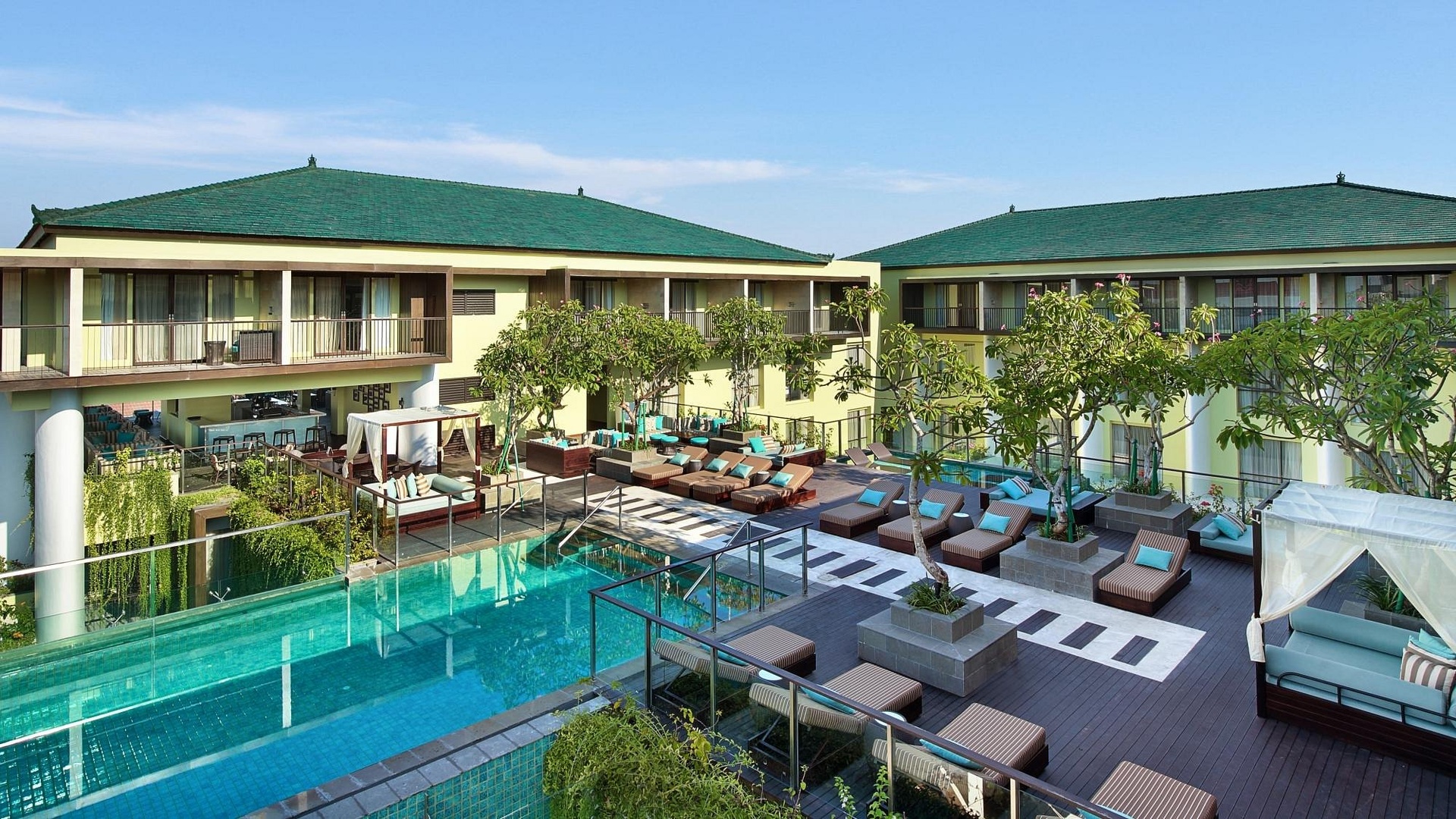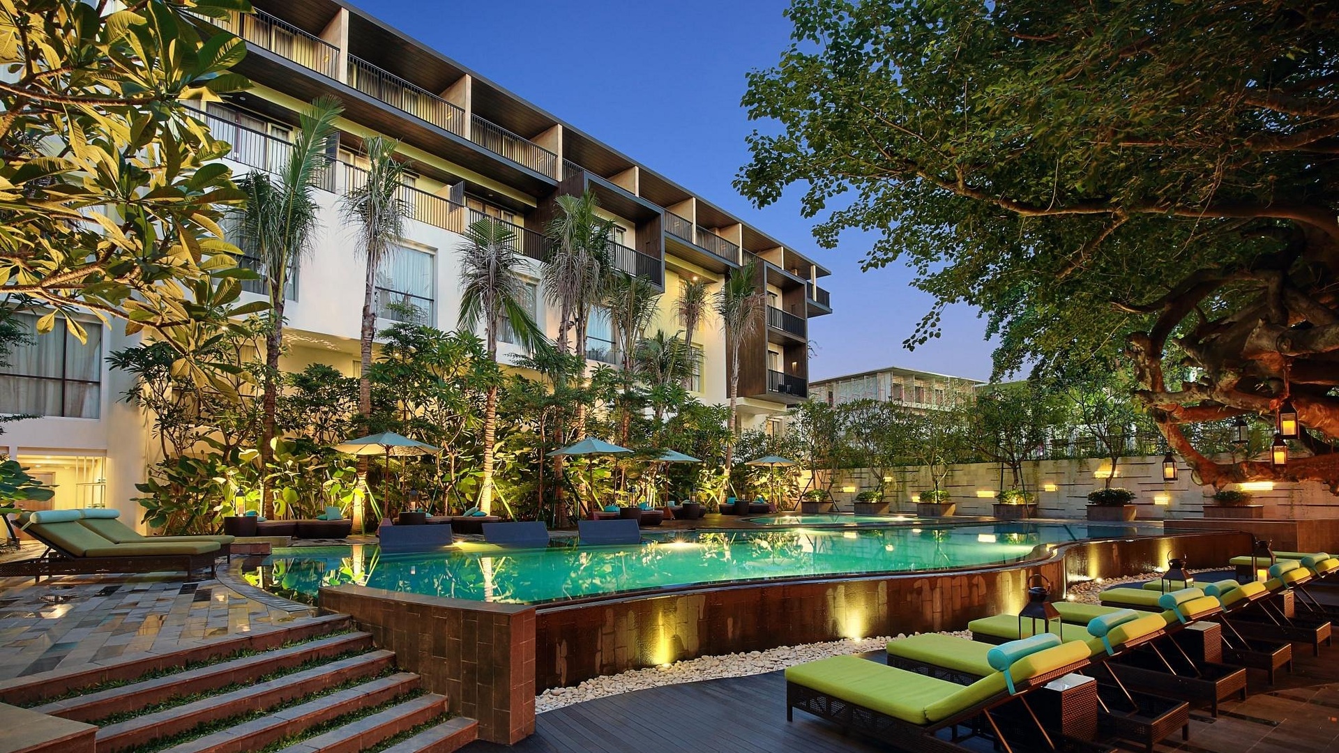 4* Mercure Bali Legian offers a stylish and comfortable stay in one of Bali’s most lively coastal areas. The hotel features modern, well-appointed rooms with contemporary décor, private balconies, and thoughtful amenities designed for relaxation. You can enjoy two outdoor swimming pools, including a rooftop infinity pool with sunset views, as well as a spa and fitness centre. The on-site restaurant serves a variety of local Indonesian flavours and international cuisine. Its prime location between Legian and Kuta beaches provides easy access to shopping, nightlife, and beach activities. With friendly service, vibrant surroundings, and excellent facilities, the hotel is an ideal choice for travellers seeking comfort, convenience, and a dynamic Bali experience.