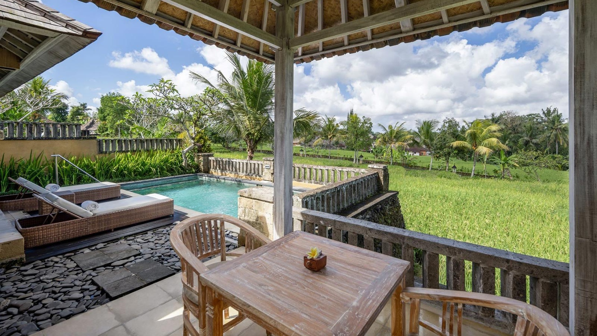 4* Wapa di Ume Ubud offers a serene and luxurious retreat surrounded by lush rice fields and tropical greenery. Designed to reflect traditional Balinese architecture, the resort features spacious villas and rooms with elegant interiors, private balconies, and soothing natural views. You can unwind at the infinity pool, indulge in rejuvenating spa treatments, or join yoga and wellness activities set in a peaceful environment. The on-site restaurant serves flavorful local and international cuisine, enhancing the overall experience. Warm Balinese hospitality and personalised service create a welcoming atmosphere. Located close to Ubud’s cultural attractions yet away from the crowds, it is an ideal sanctuary for relaxation, romance, and reconnecting with nature.
