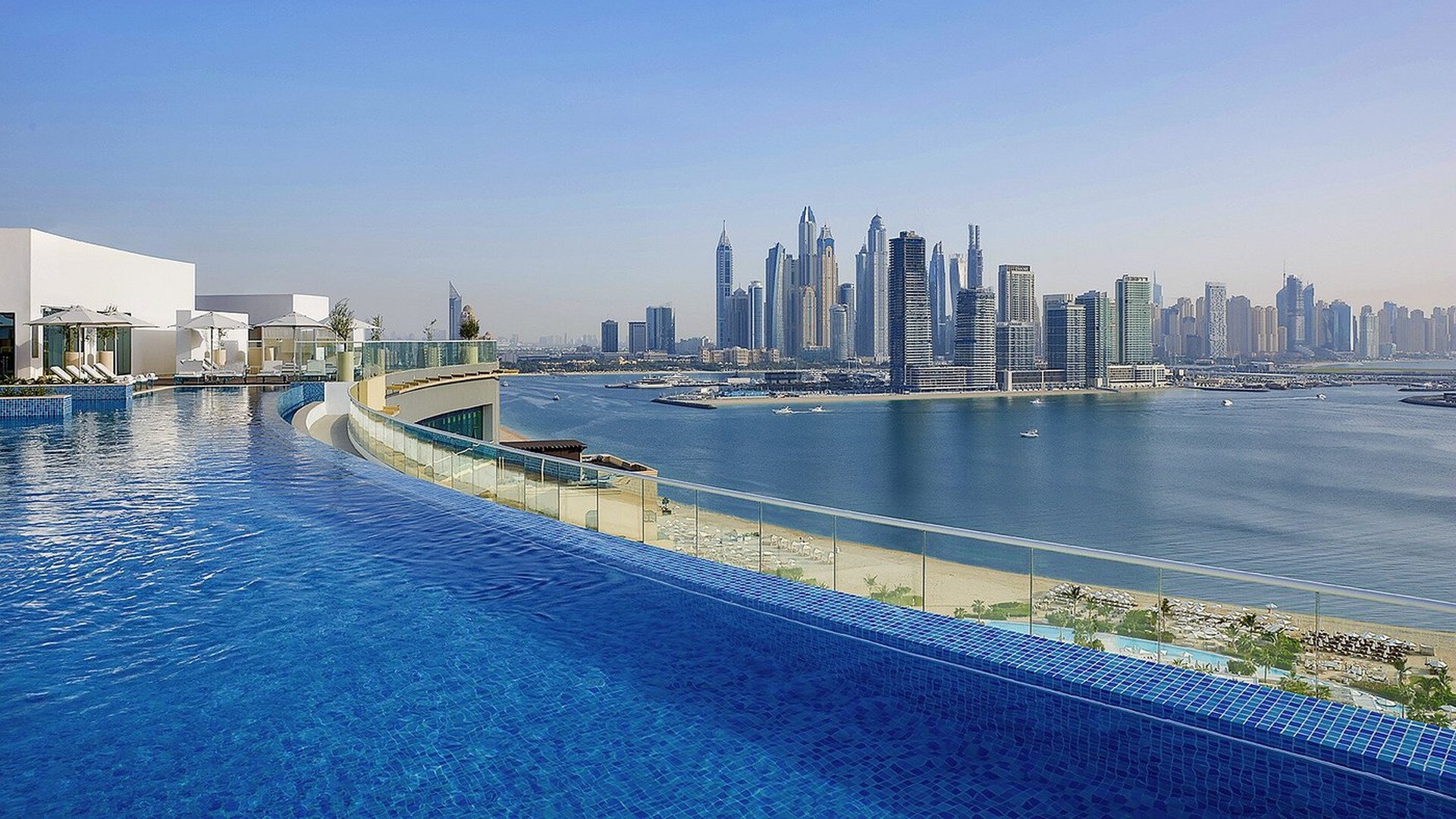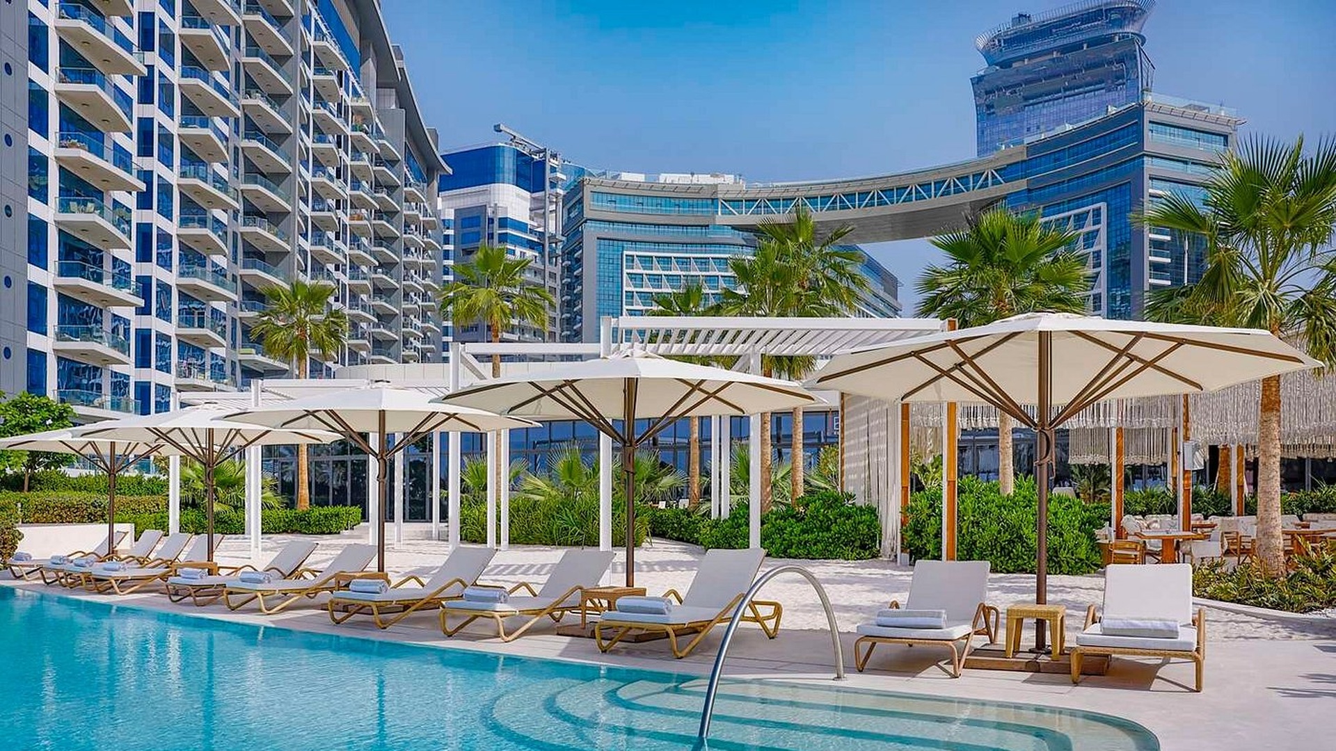 Rising along the iconic shoreline of Palm Jumeirah, NH Collection Dubai The Palm offers contemporary rooms with stunning sea and city views. The property features a rooftop infinity pool, fitness centre, spa facilities, and vibrant dining venues, combining modern luxury with relaxed beachfront living in the dynamic setting of Dubai.
