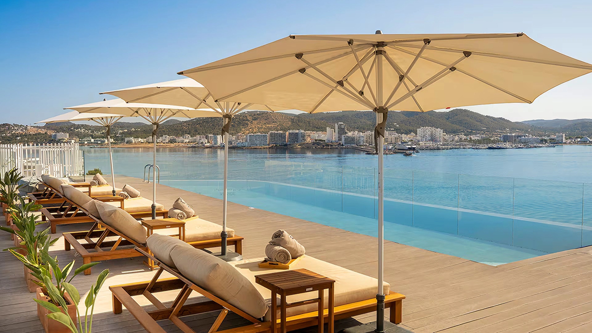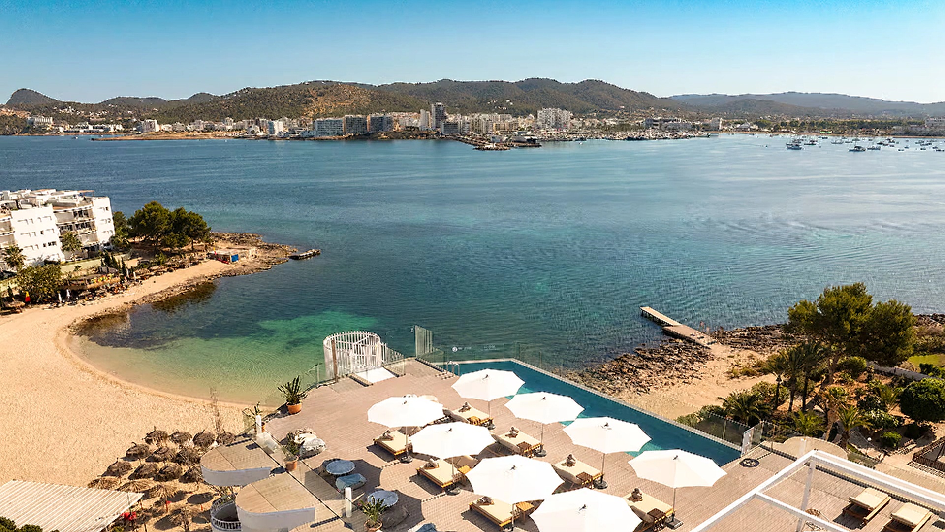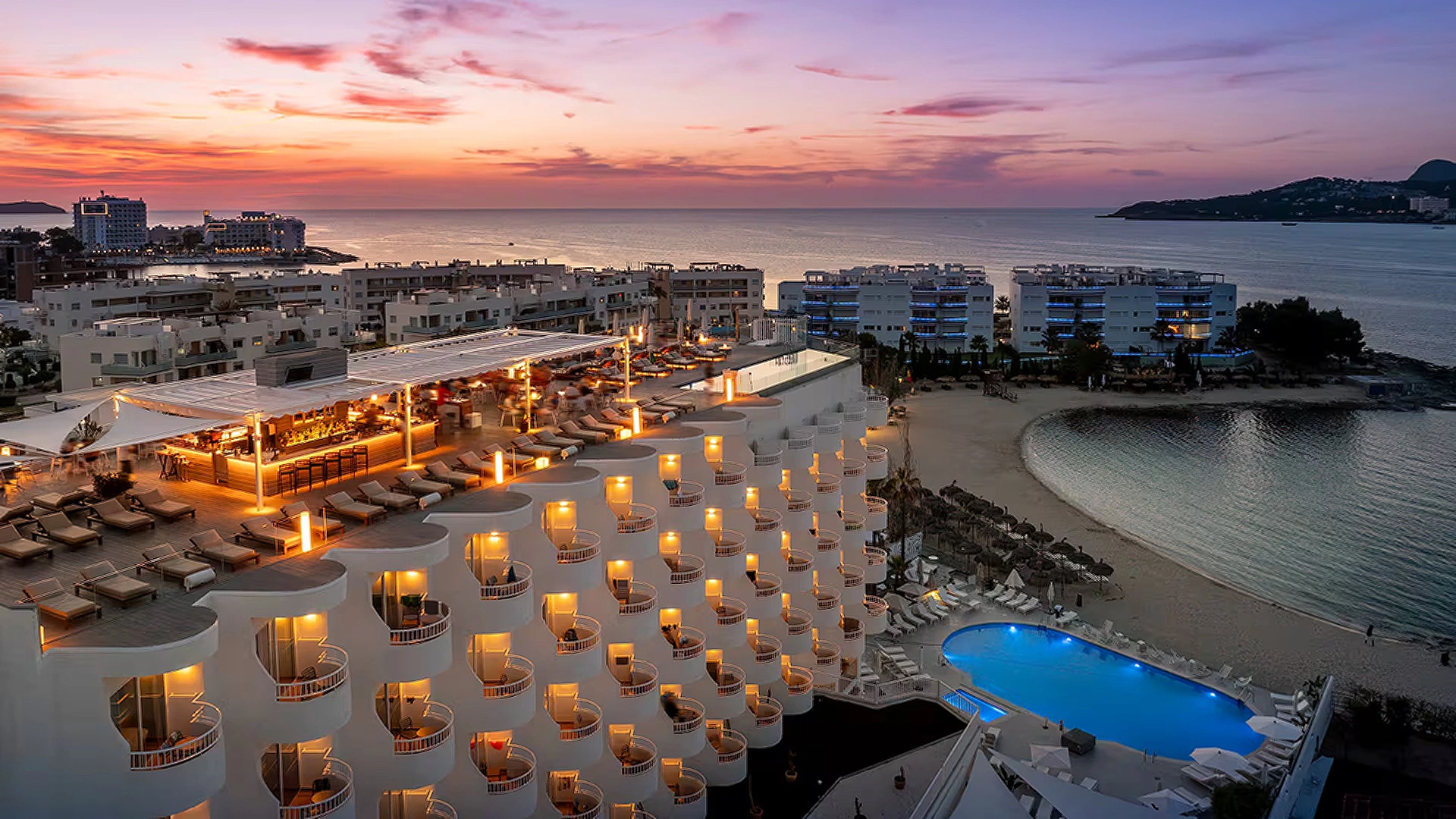INNSiDE Ibiza Beach is a stylish 4-star beachfront property in San Antonio Bay, perfect for travellers seeking comfort, views, and lively island vibes. You get to enjoy modern rooms with air-conditioning, free Wi-Fi, and sea views, along with direct access to the beach. The hotel features two outdoor pools, including a rooftop infinity pool with sunset views, plus several restaurants and bars. A 24-hour gym, wellness activities, and helpful concierge services ensure a relaxing and convenient stay.