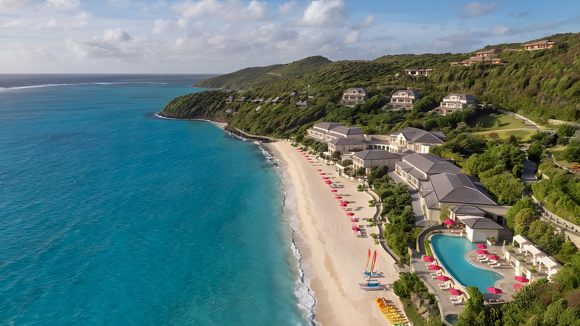 Mandarin Oriental, Canouan is an ultra-luxurious Caribbean retreat set along the pristine white sands of Godahl Beach, surrounded by turquoise waters and lush tropical landscapes. The resort features elegant ocean-view suites and private villas, many with pools and stunning sea views. You can enjoy world-class spa treatments, golf, tennis, snorkelling, and fine dining. With its peaceful setting, breathtaking scenery, and exceptional service, the property offers a perfect blend of relaxation, beauty, and exclusive island experiences.