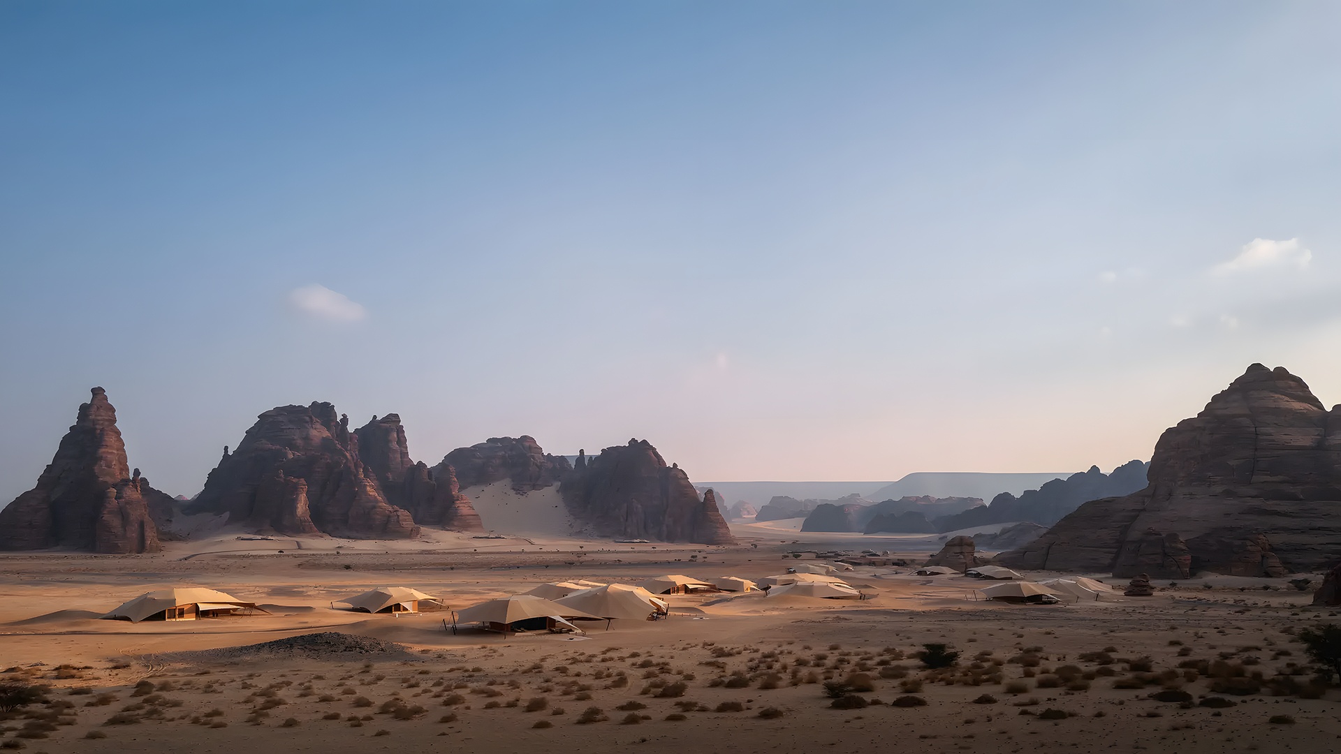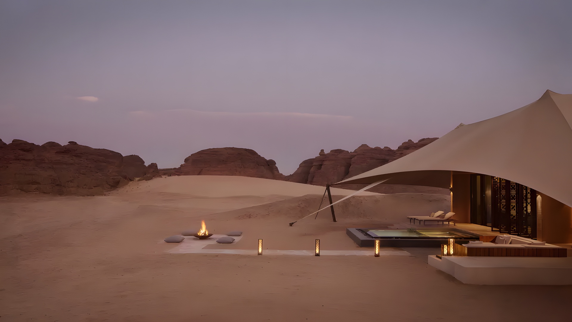 Banyan Tree Alula is a striking luxury desert retreat set in the dramatic Ashar Valley, where 79 tented villas blend seamlessly into iconic sandstone landscapes and dunes. Each villa offers privacy, serene outdoor living spaces, and many include private pools with sweeping valley views. You can unwind at a secluded infinity‑edge rock pool carved between towering rock walls or enjoy holistic spa treatments inspired by both local and Asian wellness traditions. Dining here ranges from authentic regional cuisine to signature Thai flavours, while bespoke experiences like stargazing, heritage tours, and hot‑air balloon rides connect visitors deeply with the ancient surroundings.