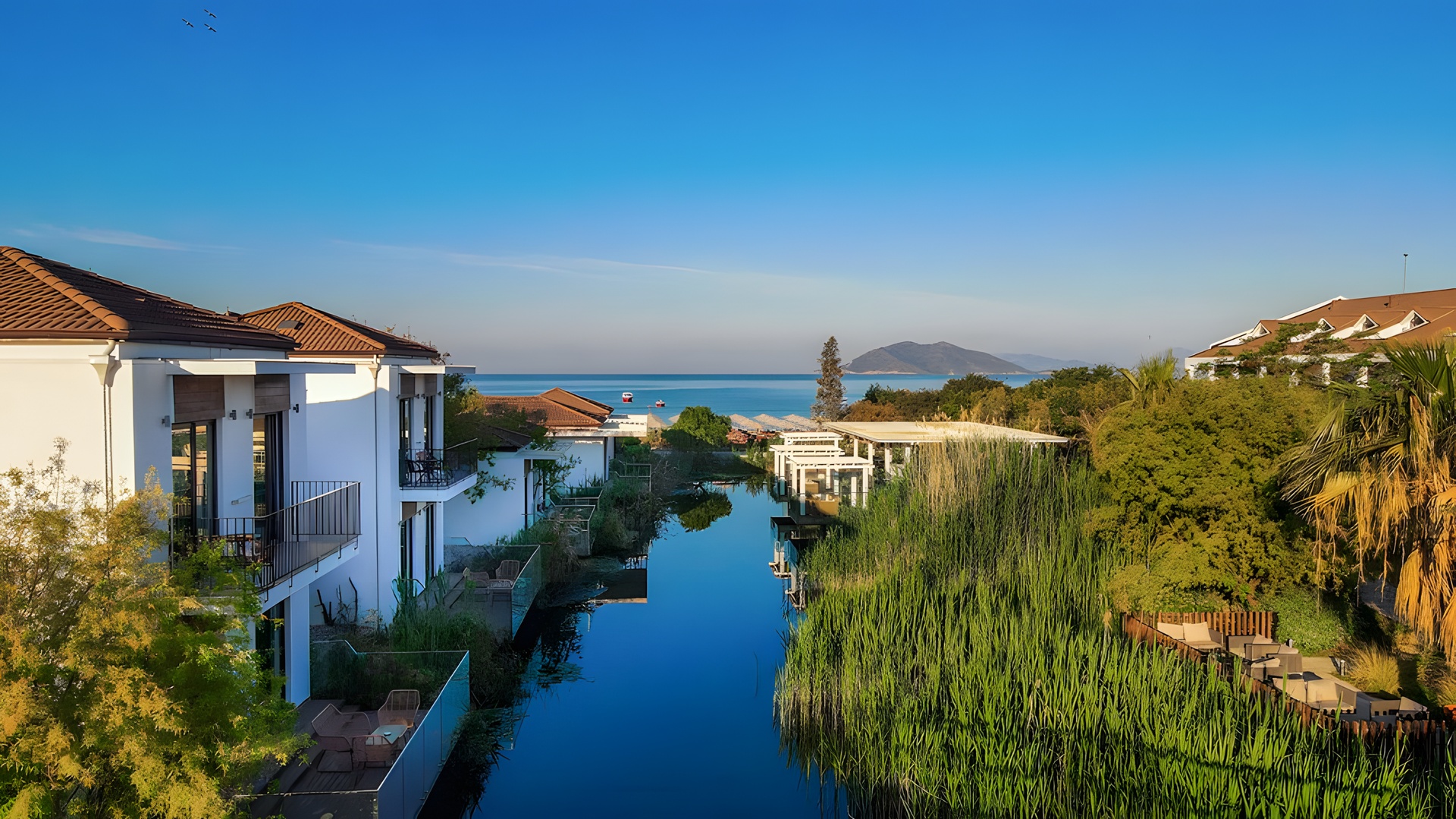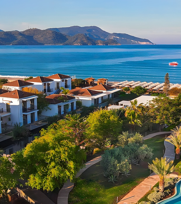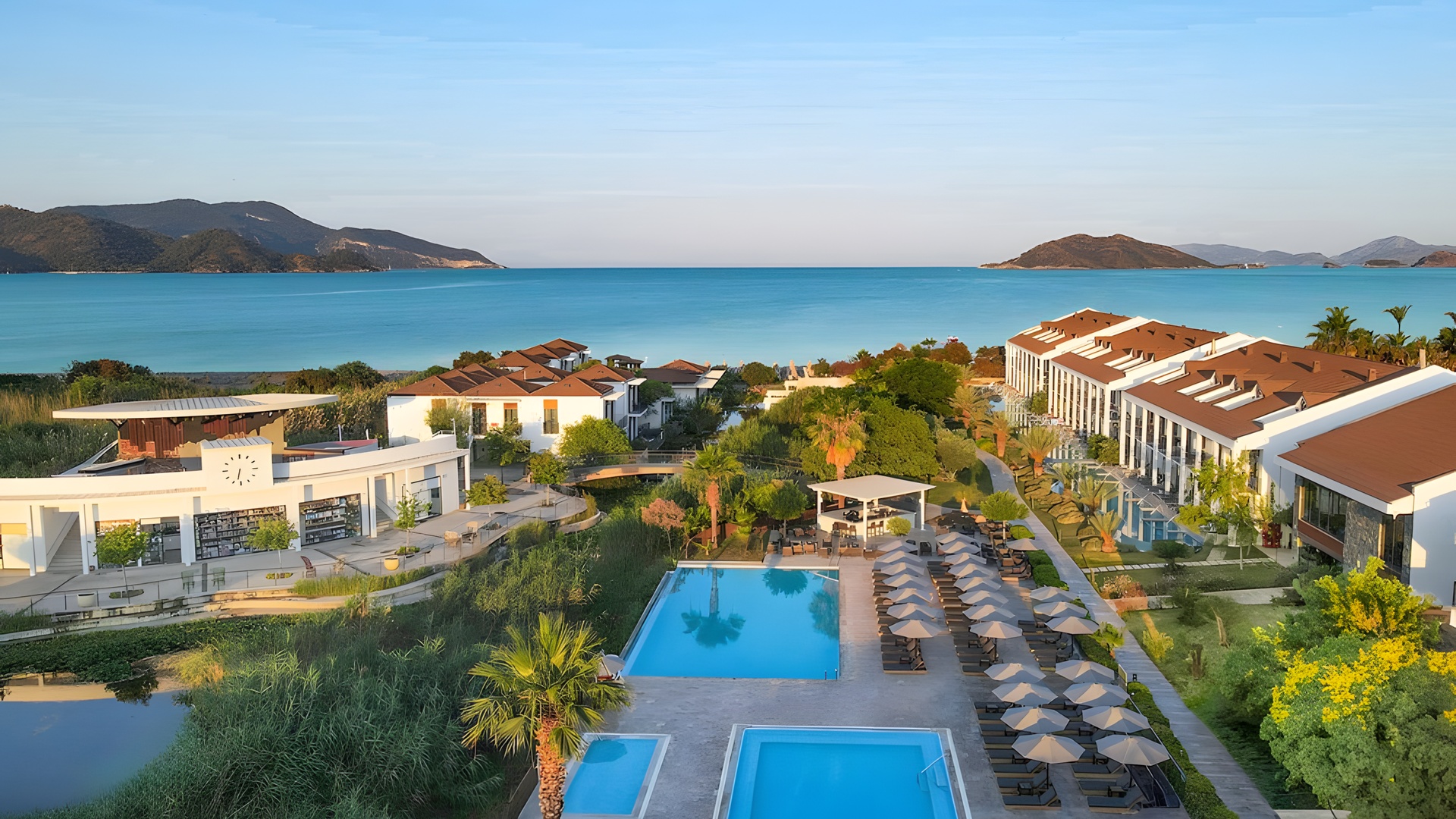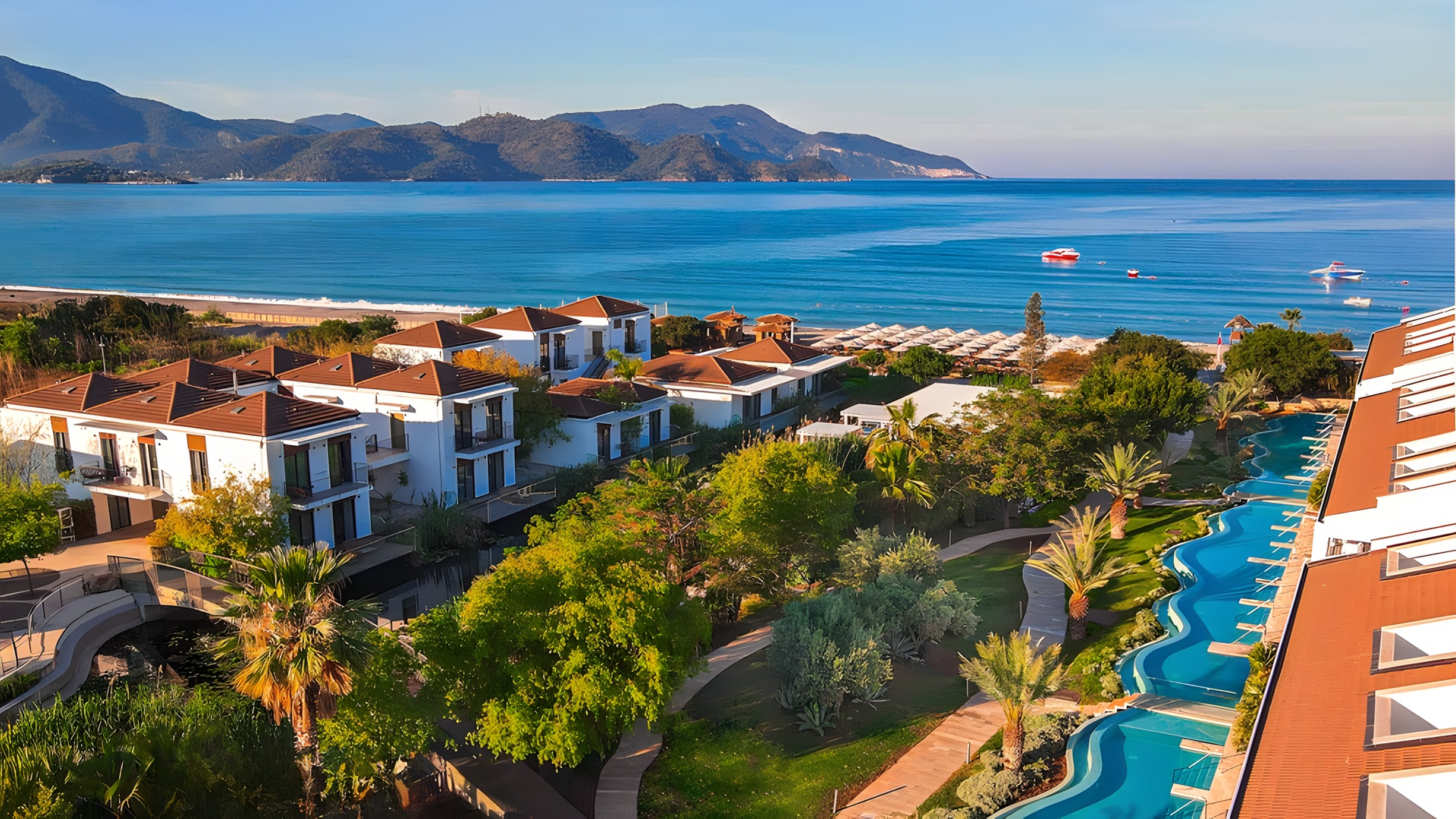Jiva Beach Resort is a luxurious 5* Ultra All Inclusive resort on Çalış Beach in Fethiye, Turkey, blending vibrant entertainment with seaside relaxation. It boasts multiple outdoor and indoor pools, water slides, a private beachfront with sun loungers, and a 5,000 m² natural lagoon. One can enjoy varied dining at buffet and à la carte restaurants, lively bars, spa and wellness facilities including Turkish bath and sauna, kids’ clubs, sports, fitness, and daily activities. Stylish rooms, some with swim-up access or balconies, make every stay comfortable.