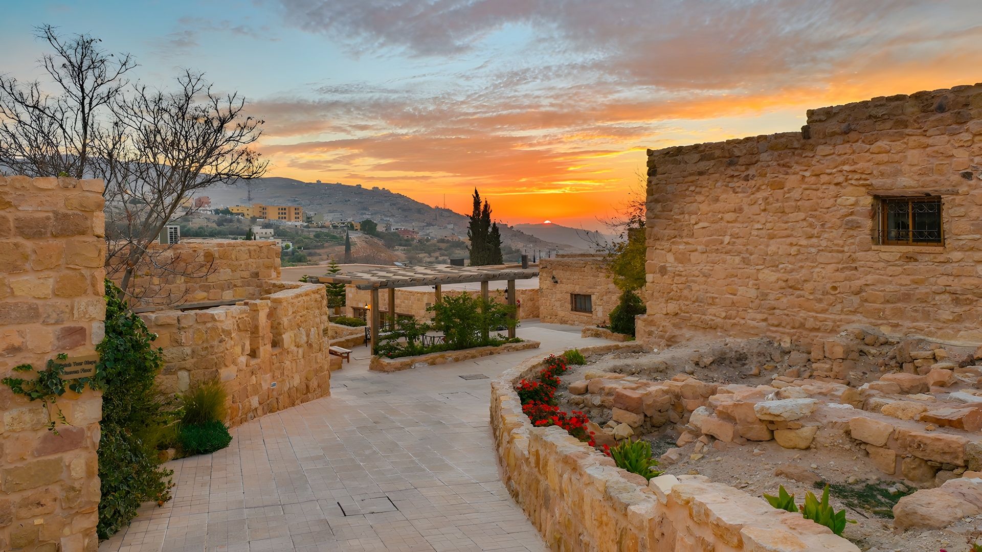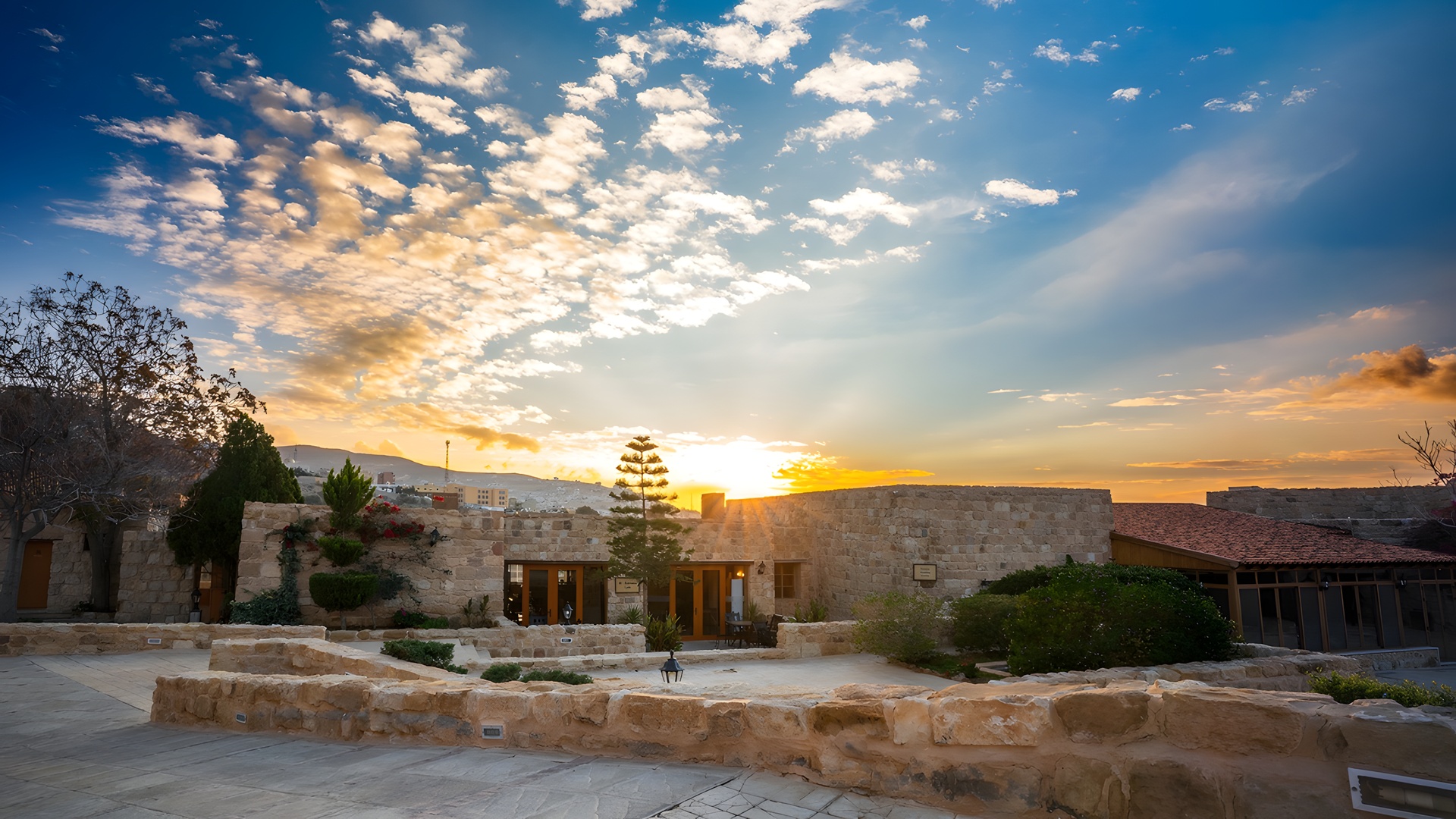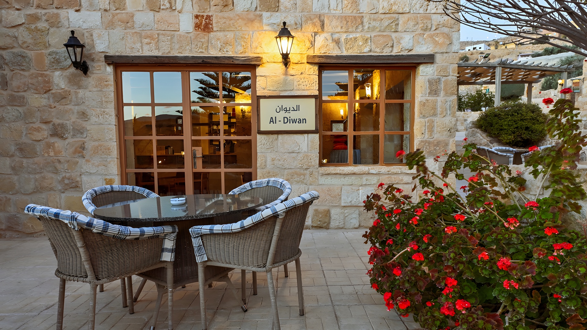Experience unique Arabian charm at the Old Village Resort near Petra. You can book your stay in one of 200 authentic rooms crafted from stone and mud, blending history with high-speed Wi-Fi. Enjoy traditional flavours at Olive Tree Restaurant or relax on the terrace with mountain views. The resort features a spa, pool, and free parking. It is around 91 km (2-hour drive) from King Hussein International Airport (AQJ) and around 200 km (3-hour drive) from Queen Alia International Airport (AMM).