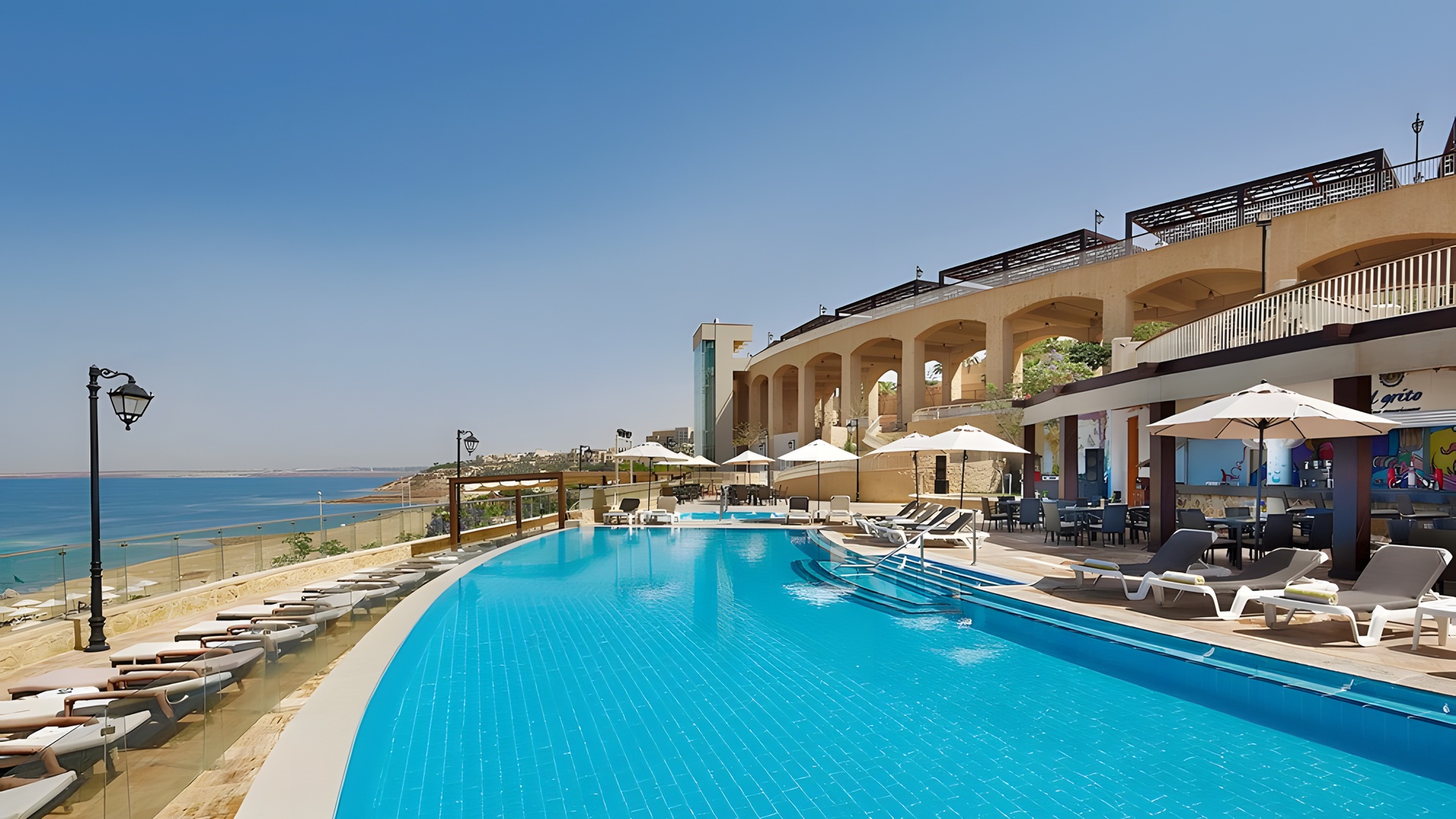 Experience 5-star luxury at Crowne Plaza Jordan – Dead Sea Resort & Spa. There are 420 elegant rooms, featuring free minibars and private balconies. Enjoy a long stretch of white sandy beach, a massive 5,500-square-meter pool, or the adults-only infinity pool. Pamper yourself at D’Sante Spa or dine at Burj Al Hamam for authentic Lebanese cuisine. Try dinner under the stars in a private cabana. With a Kids Club, Wi-Fi, and event venues overlooking the sea, it blends luxury and convenience. It is just an hour from Queen Alia International Airport (AMM).