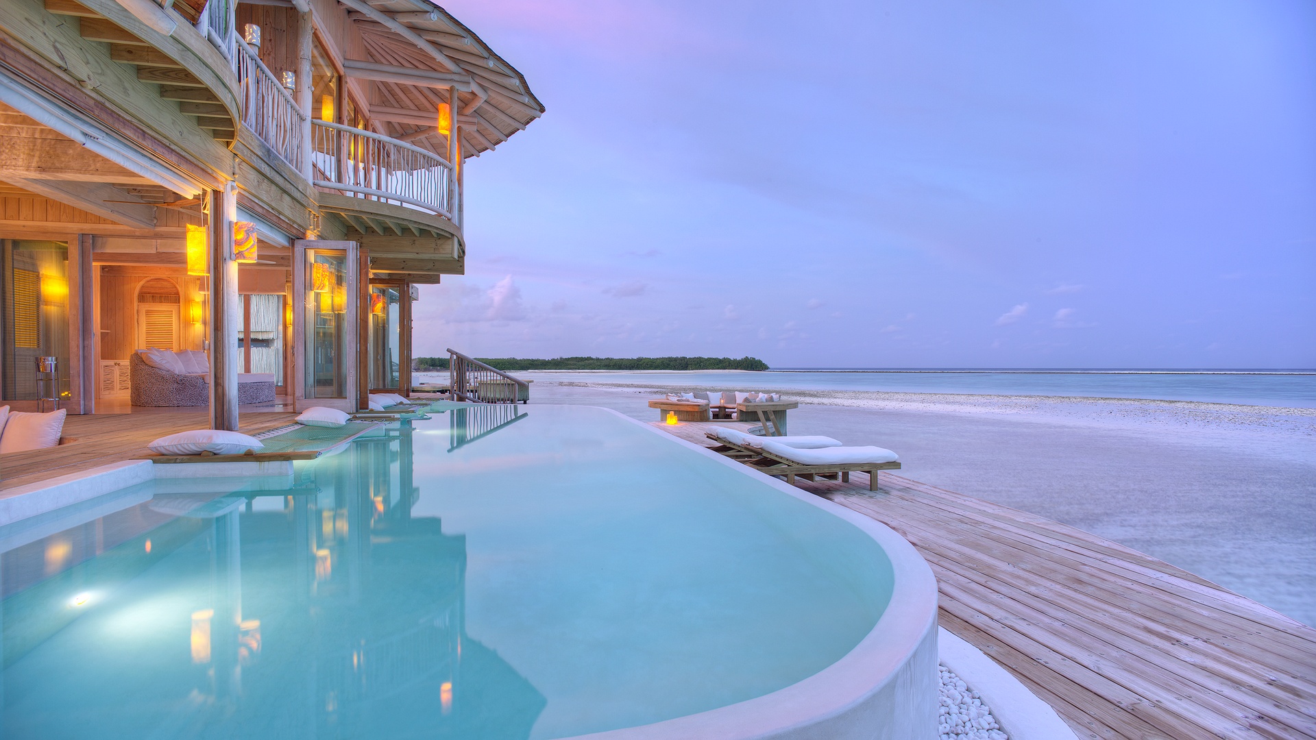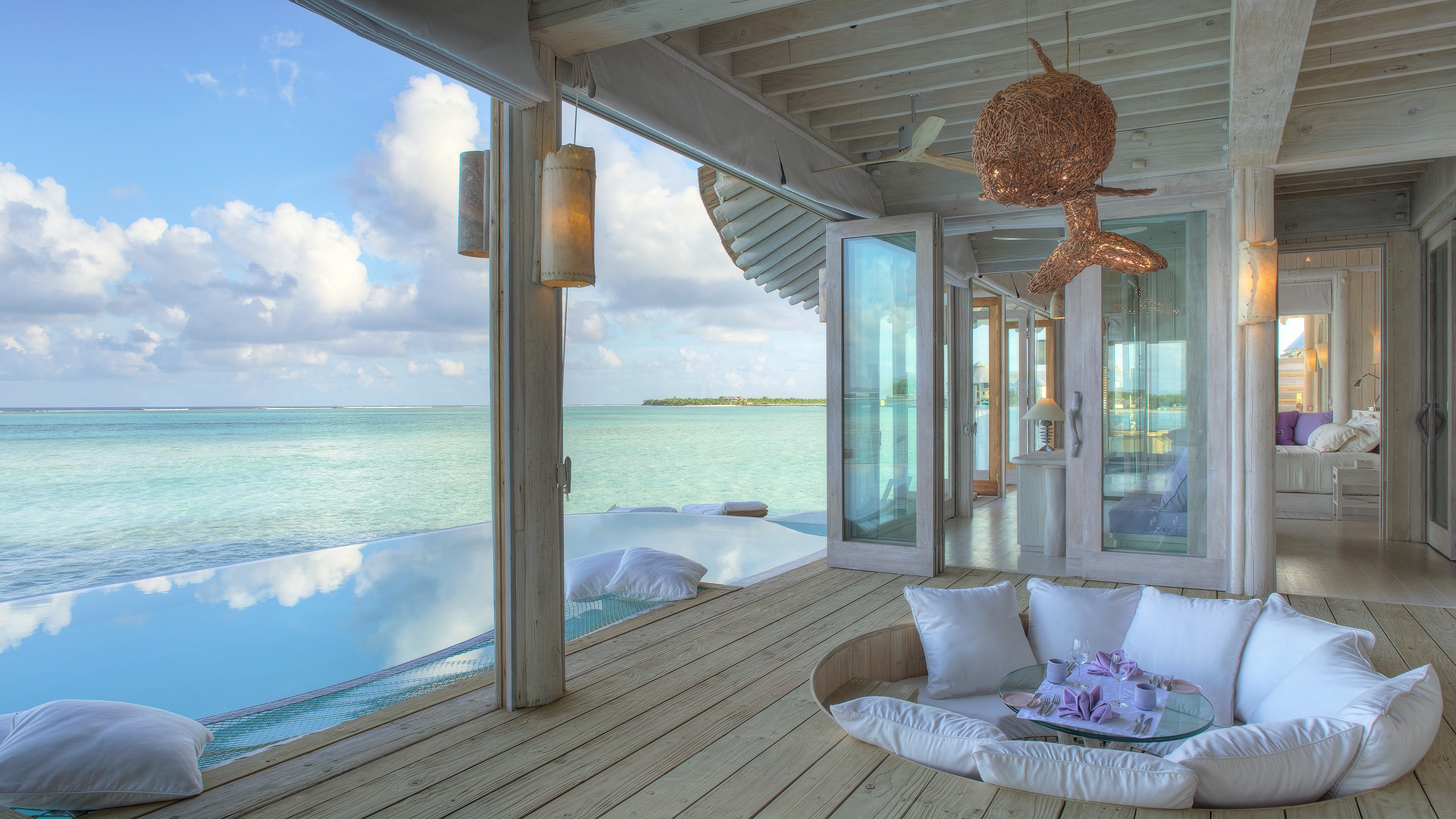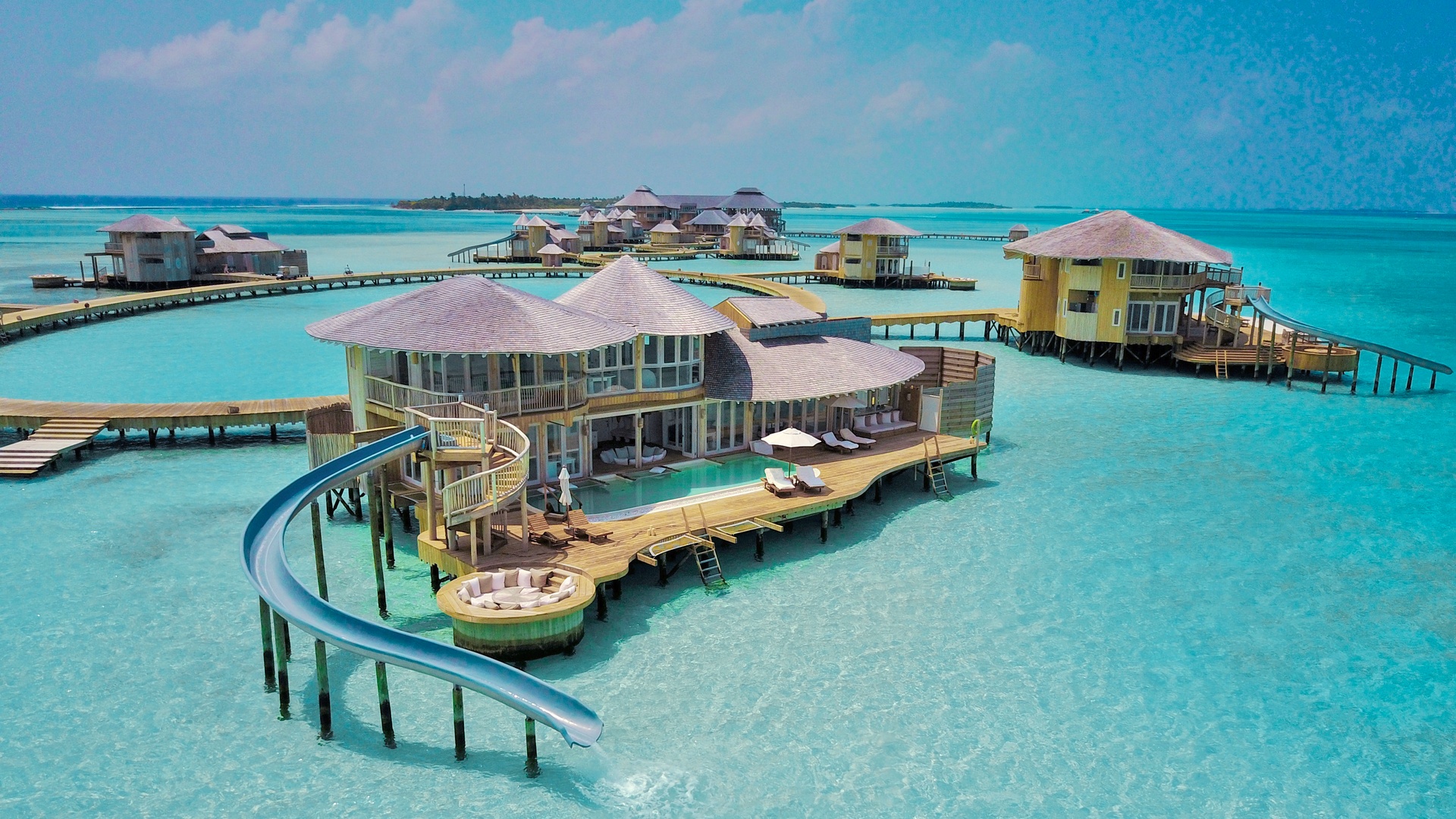 Soneva Jani is an ultra-luxury resort set within a pristine lagoon in the Maldives, renowned for its iconic overwater villas and sustainable design. The property features expansive one-to-four bedroom villas with private pools, retractable roofs, water slides, and uninterrupted ocean views. One can move barefoot across wooden walkways, embracing Soneva’s signature “no news, no shoes” philosophy. Dining is experiential, from gourmet international cuisine to organic gardens, an overwater observatory, and a chocolate room. The resort emphasises wellness with world-class spas, yoga, and personalised experiences. Crystal-clear waters invite snorkelling, kayaking, and dolphin cruises, while impeccable service ensures privacy, tranquillity, and unforgettable moments in a breathtaking natural setting. Families, couples, and honeymooners enjoy bespoke adventures, stargazing, sustainable luxury, and serene island living experiences worldwide.
