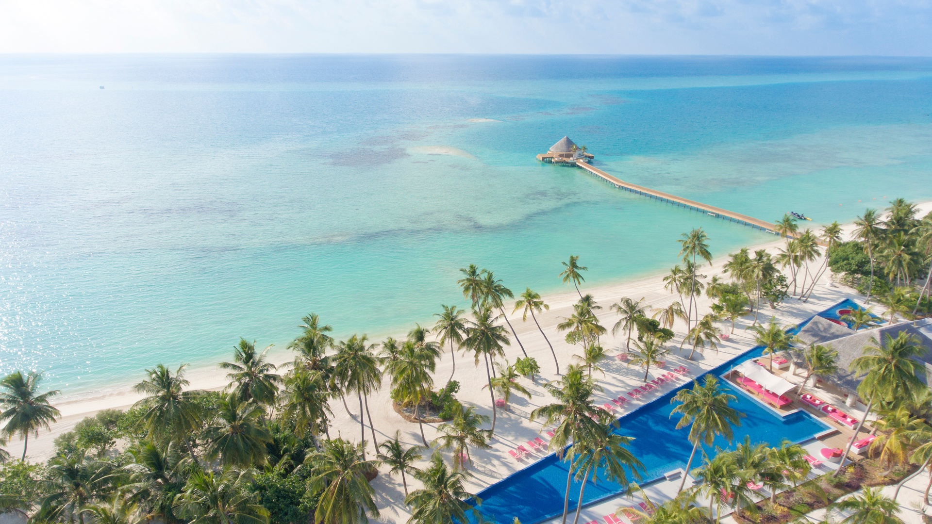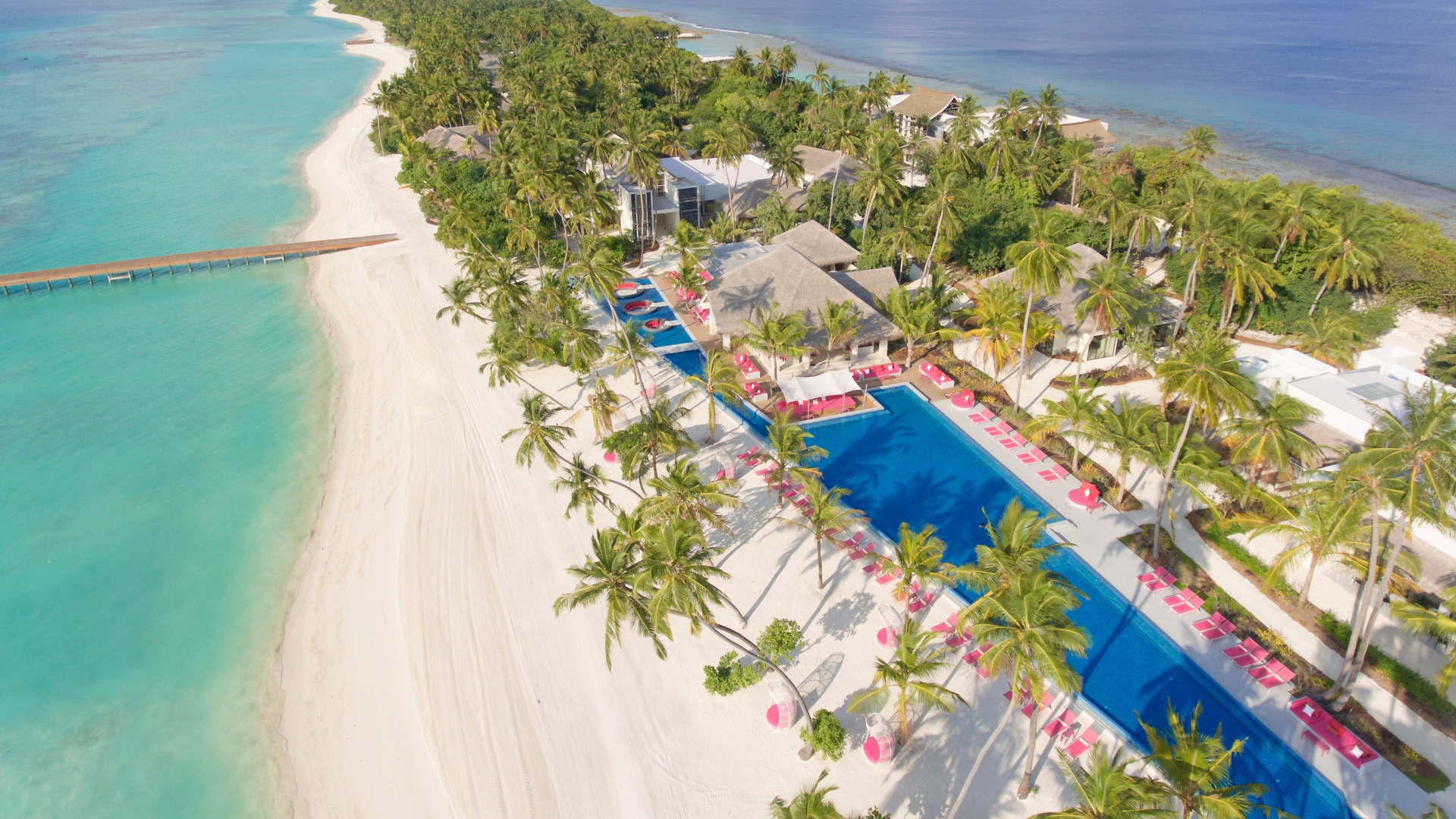 Set on a private island in the stunning Dhaalu Atoll, Kandima stretches over three kilometres of pristine white beach with crystal-clear waters and lush tropical greenery. The resort offers a variety of stylish accommodations, including beach villas with private pools, water villas with direct lagoon access, and contemporary sky studios, all designed with smart, bright interiors and high-speed Wi-Fi.