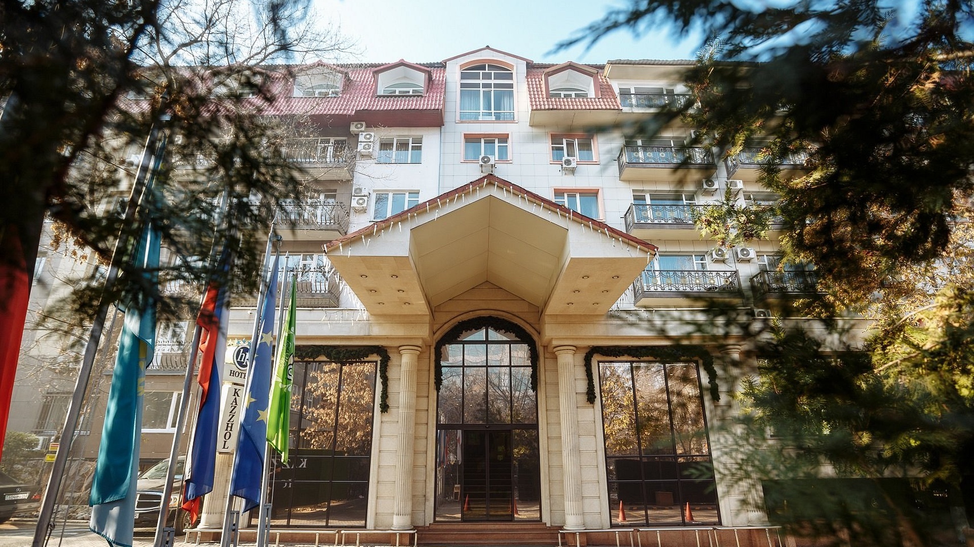 Hotel Kazzhol Almaty is a modern 4-star hotel offering a comfortable and well-equipped stay in the heart of Almaty. It features 178 air-conditioned rooms with amenities like a mini-bar, safe, satellite or flat-screen TV, balconies, and often city or mountain views; some even include kitchen facilities for self-catering. For relaxation and leisure, the hotel offers a full spa and wellness centre with an indoor pool, sauna, steam room, gym/fitness centre, and massage services, ideal for unwinding after sightseeing or business meetings. Each morning, a generous buffet breakfast is served in an elegant breakfast room, and the on-site restaurant and bar serve both local Kazakhstani cuisine and international dishes.