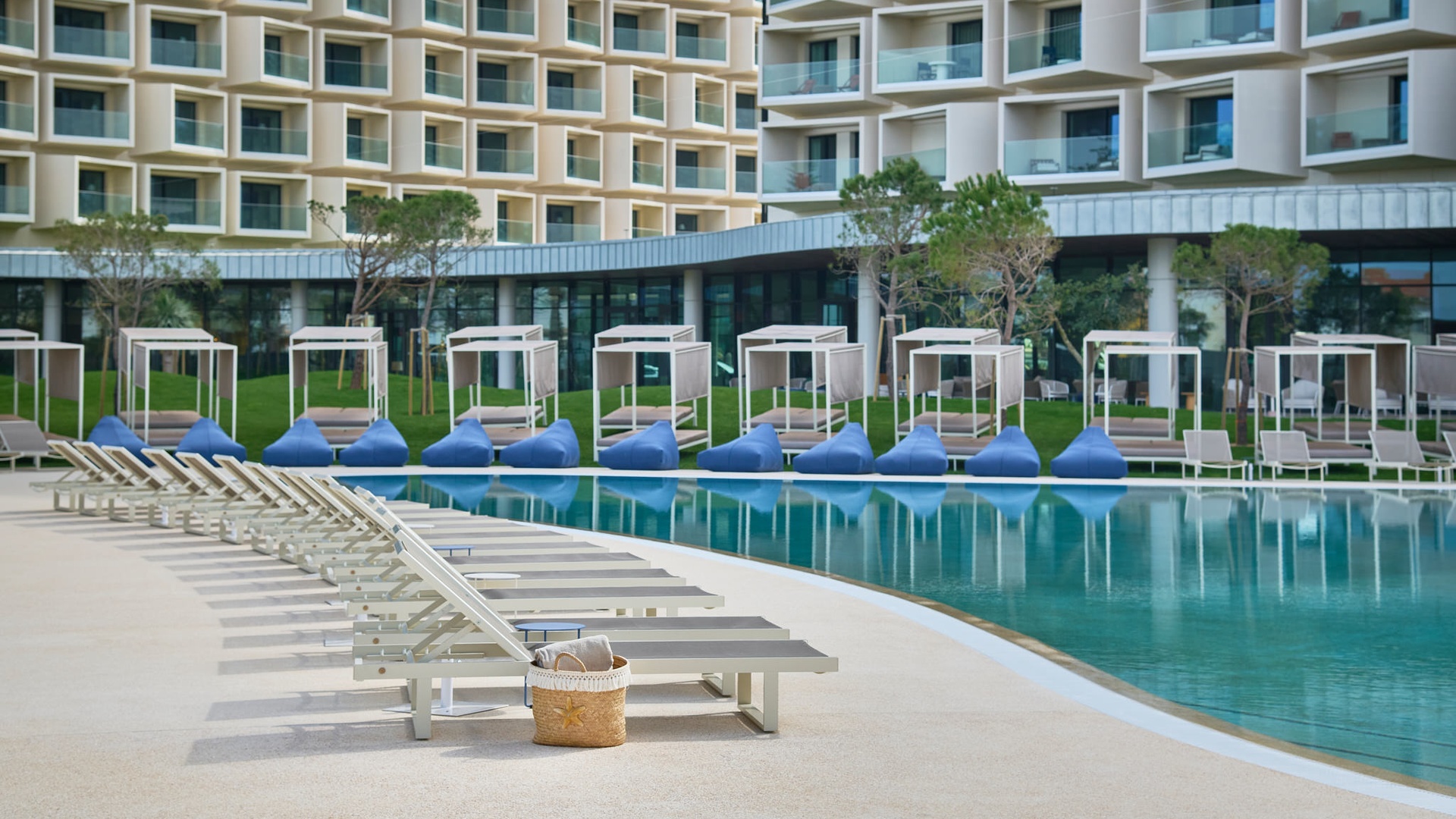 Overlooking a tranquil private lake near the vibrant Vilamoura marina, 5* Domes Lake Algarve, Autograph Collection is an elegant beachfront-style resort just moments from Praia da Falésia. The hotel features sophisticated rooms and suites with balconies offering lake, garden, or sea views. Guests can enjoy several swimming pools, a private beach area, and a luxury spa. With gourmet restaurants, watersports on the lake, fitness facilities, and a kids’ club, it’s ideal for both relaxing and activity-filled Algarve holidays.