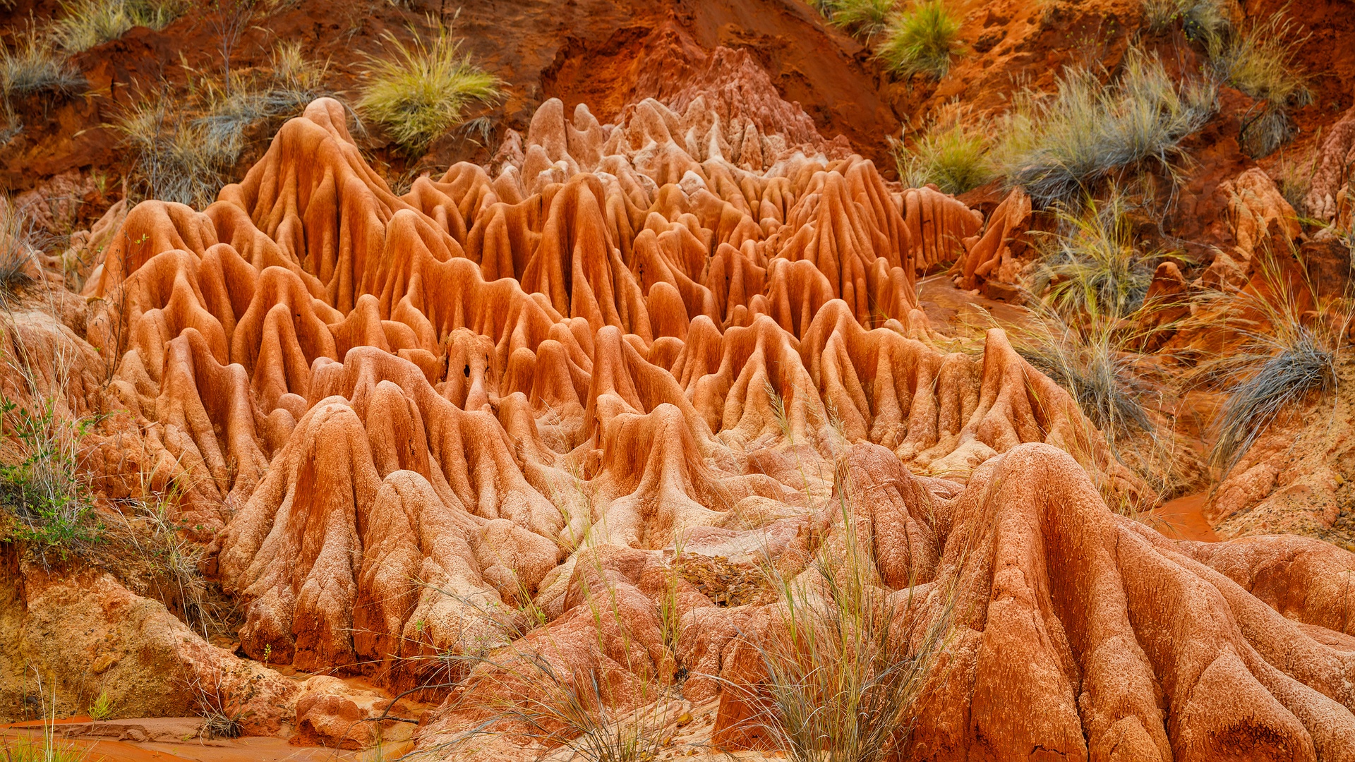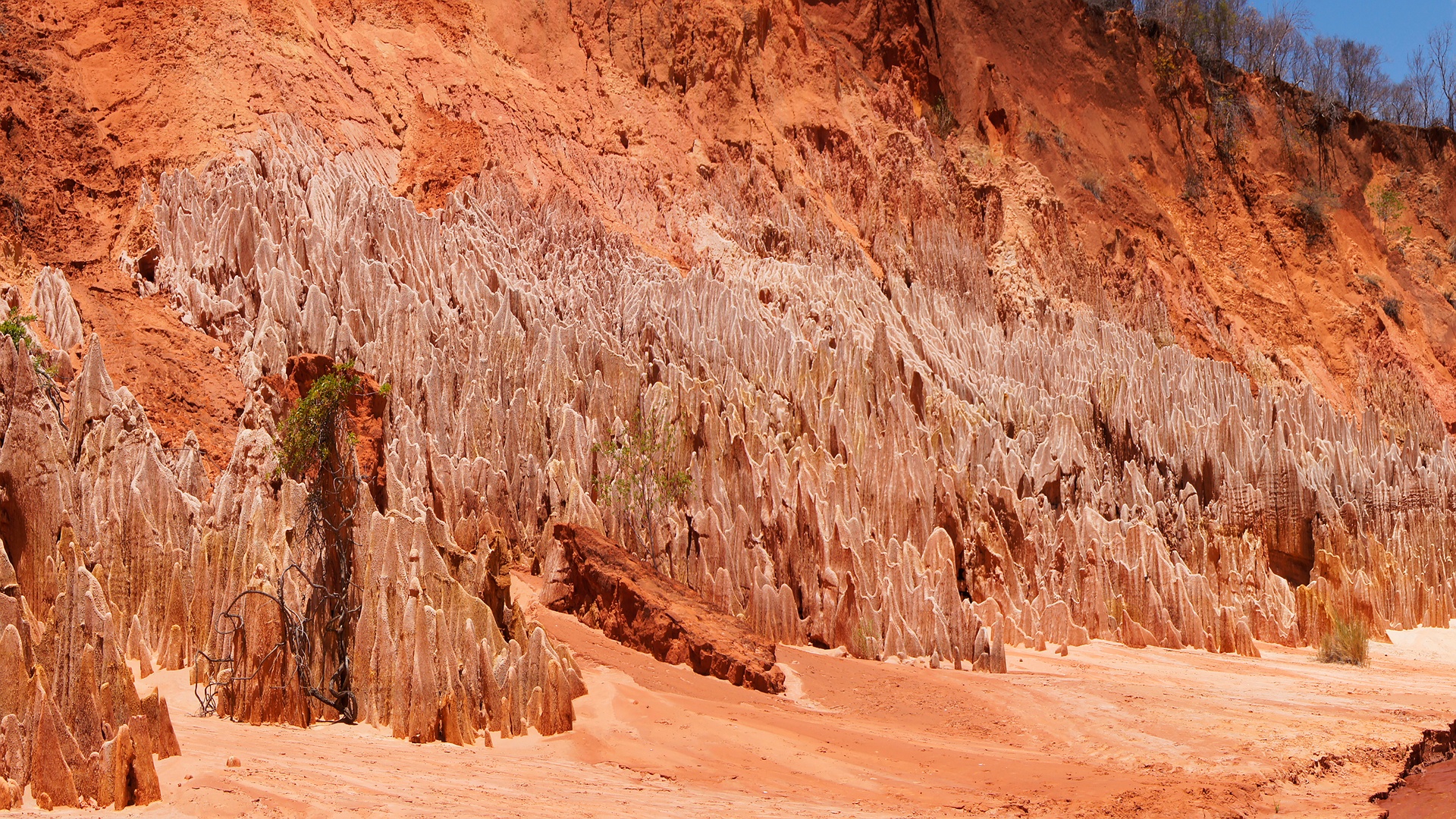 Departing from Joffre Ville, we set out toward Mahamasina, taking time along the way to explore the remarkable Red Tsingy. Although its geological origins mirror those of the famous Tsingy of Ankarana, the Red Tsingy was formed thousands of years later. What distinguishes this striking landscape is its composition: while Ankarana’s formations are sculpted from limestone, the Red Tsingy emerged through the erosion of sandstone, giving it a warm, rust-colored hue and a dramatically different texture.