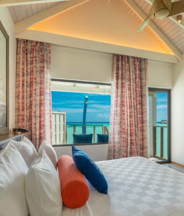 Experience the utmost bliss of staying at this majestic overwater retreat which you are going to reach by a nice wooden jetty. To make this overwater experience even more memorable, get your favourite drink from the array of wines and spirits which you get from the Wine Boutique at La Promenade. When you are at this romantic hideaway, spend your time relaxing at the resort's private deck with your partner. Or, whenever you feel like it, get down the stairs into the lagoon for a rejuvenating swim in the warm water.