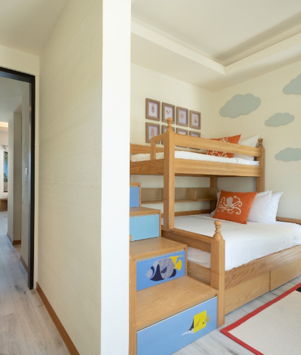 Choose to stay at this lively and comfy 2-bedroom and 2-bathroom accommodation that is equipped with top-class amenities and exhibits a nice contemporary décor. You get smart storage, comfortable furniture, and more ensuring all your requirements are taken care of. As for the stay, the room has a trendy master bedroom that is linked with a children's bedroom where the entire family can spend their holiday peacefully. Moreover, the children's room has a nice bunk bed beautifully decorated on all sides for a pleasant stay. Overall, you wouldn't find a better space to connect with nature than this aesthetic accommodation.