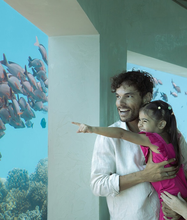 Experience top-class culinary experience at this exceptional Maldivian under-ocean restaurant where you get a front-row seat to the region's brilliant coral reef and marine life. This horseshoe-shaped restaurant offers nice four-course spreads for lunch and dinner that include seafood, meat, vegan, or vegetarian (a special kid's menu is also available). (Do note that the Fushi Plan™ does not include dining at Only Blue which is chargeable with prices starting at $125++ per person.)