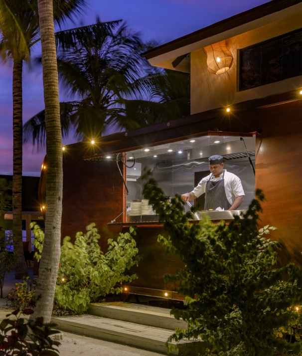 On your holiday, when you feel like savouring some grills and fresh seafood you can get them from Copper Pot Food Truck. Relish them accompanied by fantastic wines under the sky. Specifically, the a la carte menu offers seafood, meat, and vegetarian grills which include freshly caught lobsters, and finely cut steaks. As your food is being prepared, appreciate the craft of masterful chefs from the pop-in window who will be delivering your food in a unique Fushi style! (Do note that dining at The Copper Pot Food Truck is chargeable and is not included according to the Fushi Plan™. It is payable from $55++ per person.)