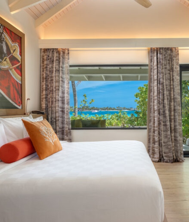 Enjoy an unforgettable time at these refreshing beach villas which are set just a couple of distances away from white sandy beaches. You get easy access where you just enjoy a nice dip into the lagoon anytime. Also, you'd love the interiors consisting of warm and wooden floors, and elegant motifs, there's a nice plush bed, a large sofa, and you will find nice vibrant textiles. There's a walk-in wardrobe that leads up to a nice bathroom with a luxurious marble vanity. There's also a nice outdoor shower surrounded by a garden for your leisure.