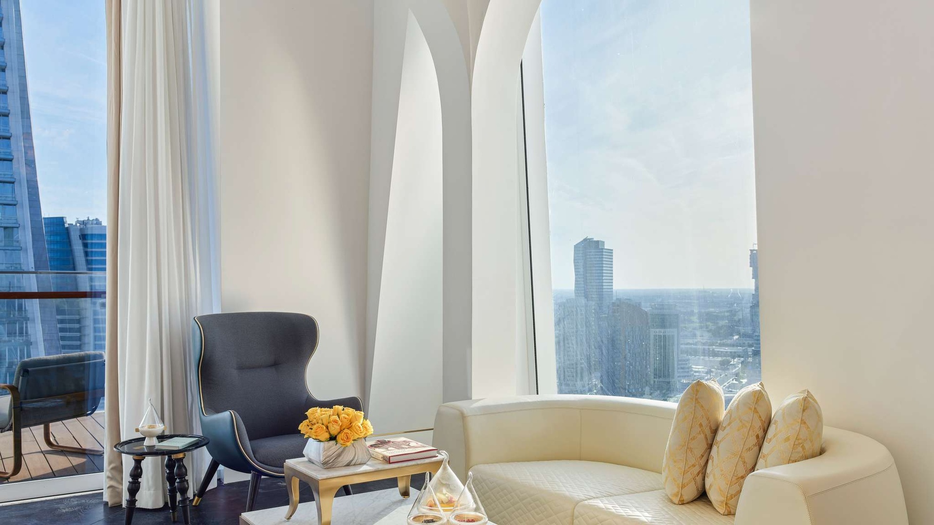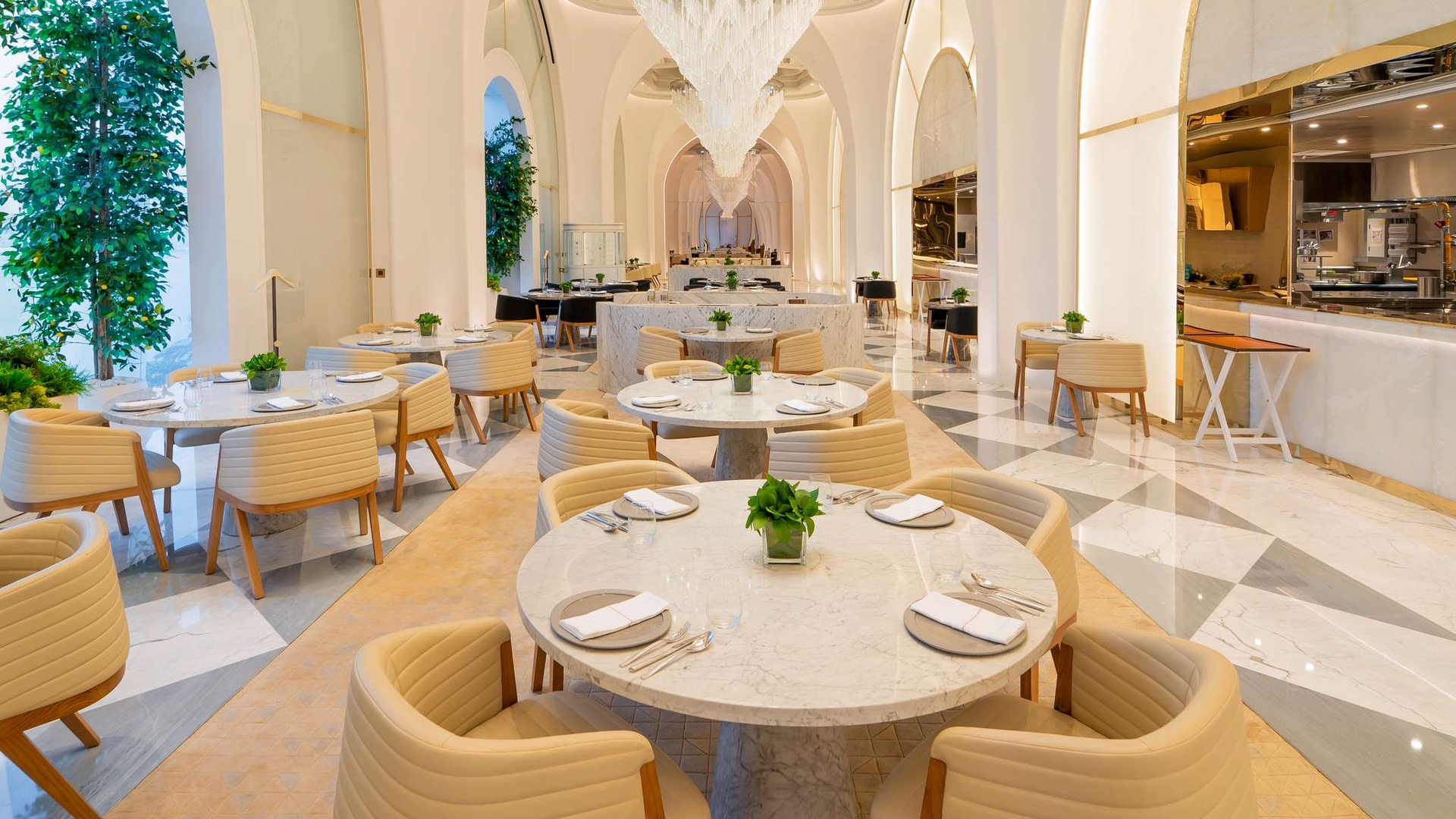 Floor-to-ceiling windows frame sweeping views of the Arabian Gulf or the glittering Lusail skyline, while private terraces in select suites enhance the sense of space and privacy. Interiors are refined and dramatic, with marble bathrooms, bespoke furnishings, and personalised butler service for every guest, reflecting the legendary standards of the Raffles brand. Culinary experiences are central to the stay, highlighted by Mediterranean-inspired dining at Alba and sophisticated lounges ideal for sunset views over the marina.