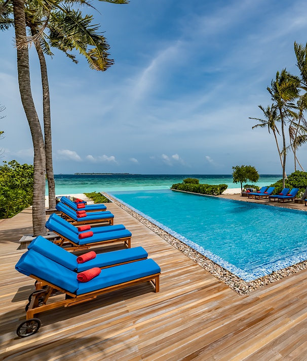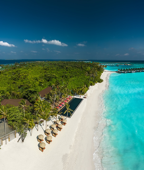 These villas, spread across the sunset side of the island, are surrounded by the island's lush vegetation, making them extremely private. The spacious and elegant villas are contemporary in style and are generously appointed with a private pool and separate living area. Being steps away from the beach and the gorgeous lagoon, enjoy the refreshing breeze and sunset views from the comfort of your private terrace. All guests booking this villa get access to a personal ambassador during their stay ensuring their every need is taken care of.