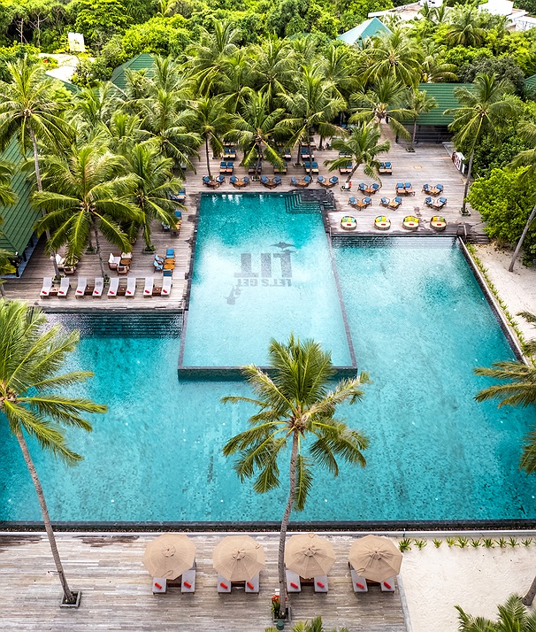 Siyam World Maldives is located on Dhigurah Island in the Noonu Atoll. It's accessible from Male's Velana International Airport (MLE) by a 45-minute scenic seaplane flight or a domestic flight followed by a short speedboat ride.