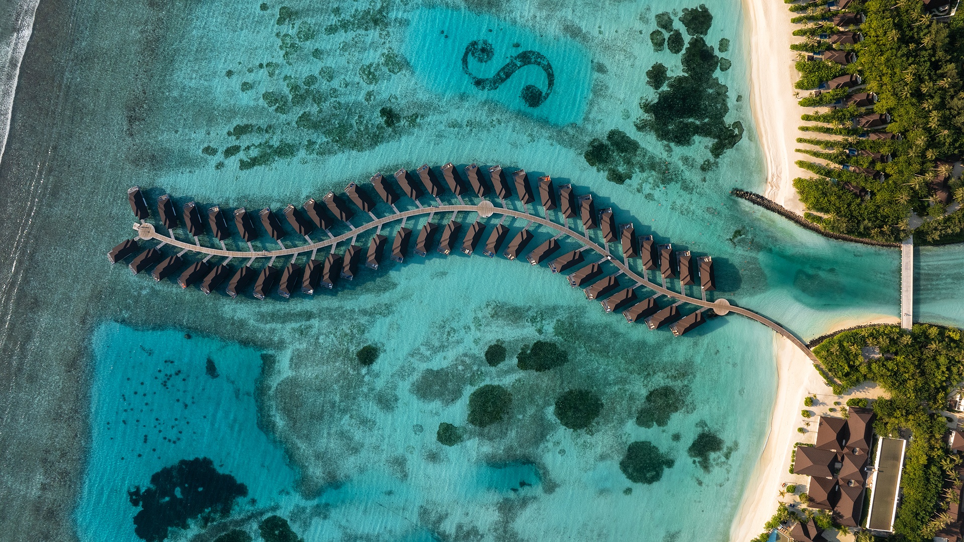This is the resort's largest overwater suite which is situated at the resort's furthest end of the jetty and is like a haven in itself. Needless to say, you will get plenty of space for your leisure. There's a huge outdoor deck with plenty of space for relaxing, dining, and bathing. Whereas on the inside, there are 2 bedrooms, 2 bathrooms and a magnificent living room offering stunning lagoon views.