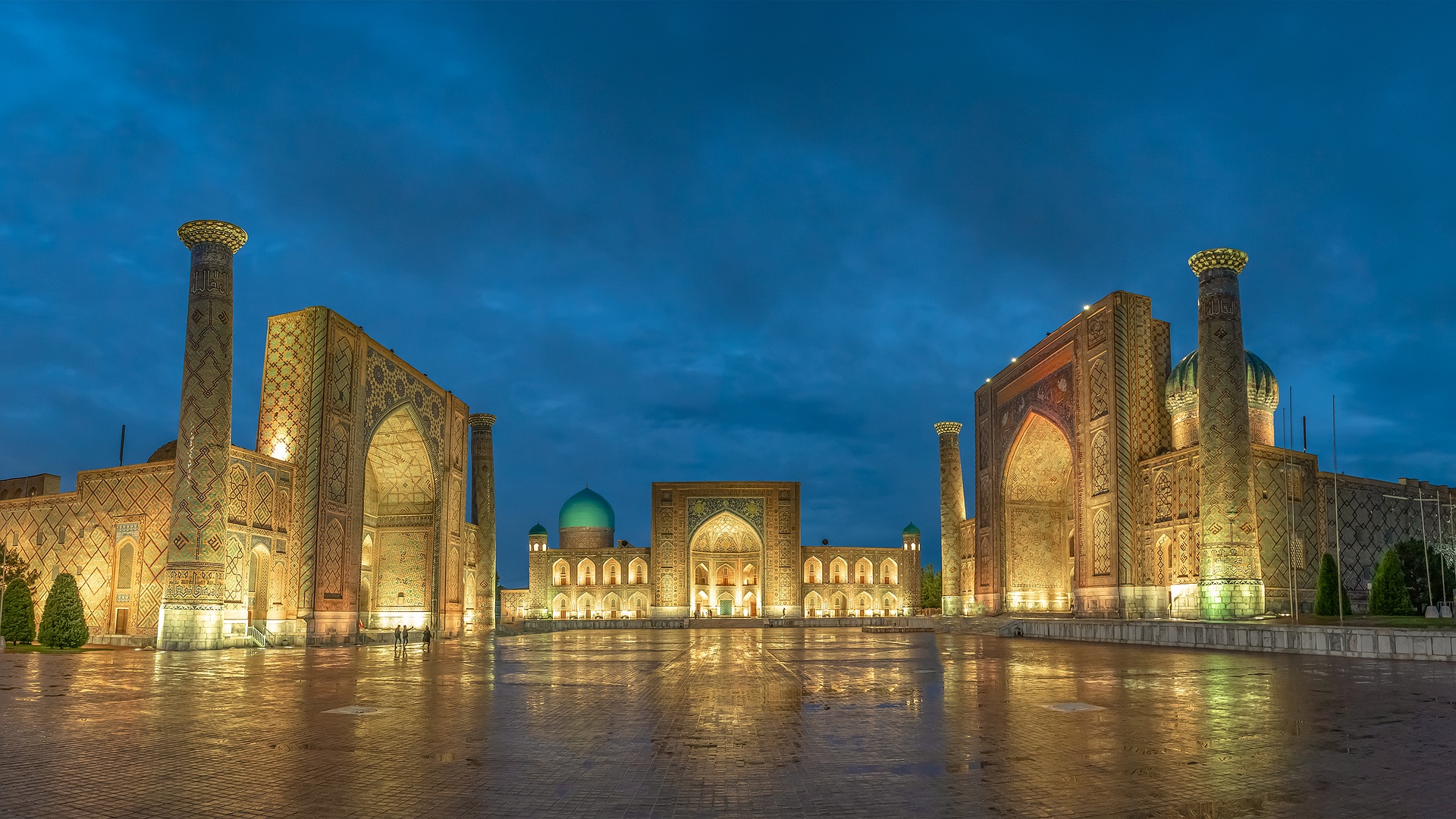 Today, you will get to enjoy some free time before starting your Samarkand exploration. Your tour takes you to the impressive Gur Emir Mausoleum, the resting place of the Timurids, followed by the iconic Registan Square with its three majestic madrasahs: Ulugbek, Sherdor, and Tillya Kari. You then admire the grandeur of the Bibi-Khanum Mosque and browse the lively Siyab Bazaar.