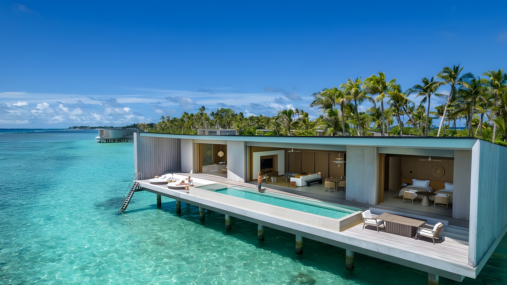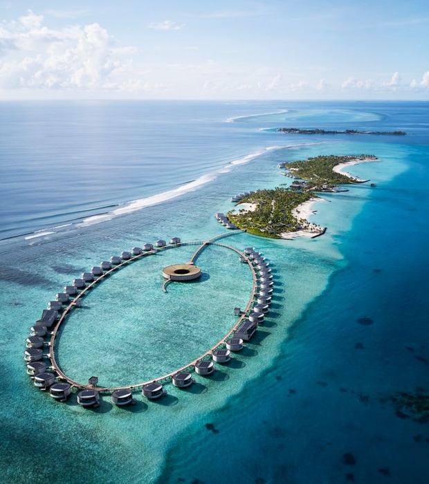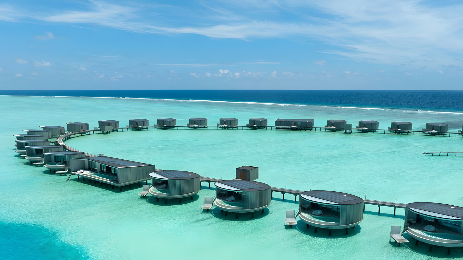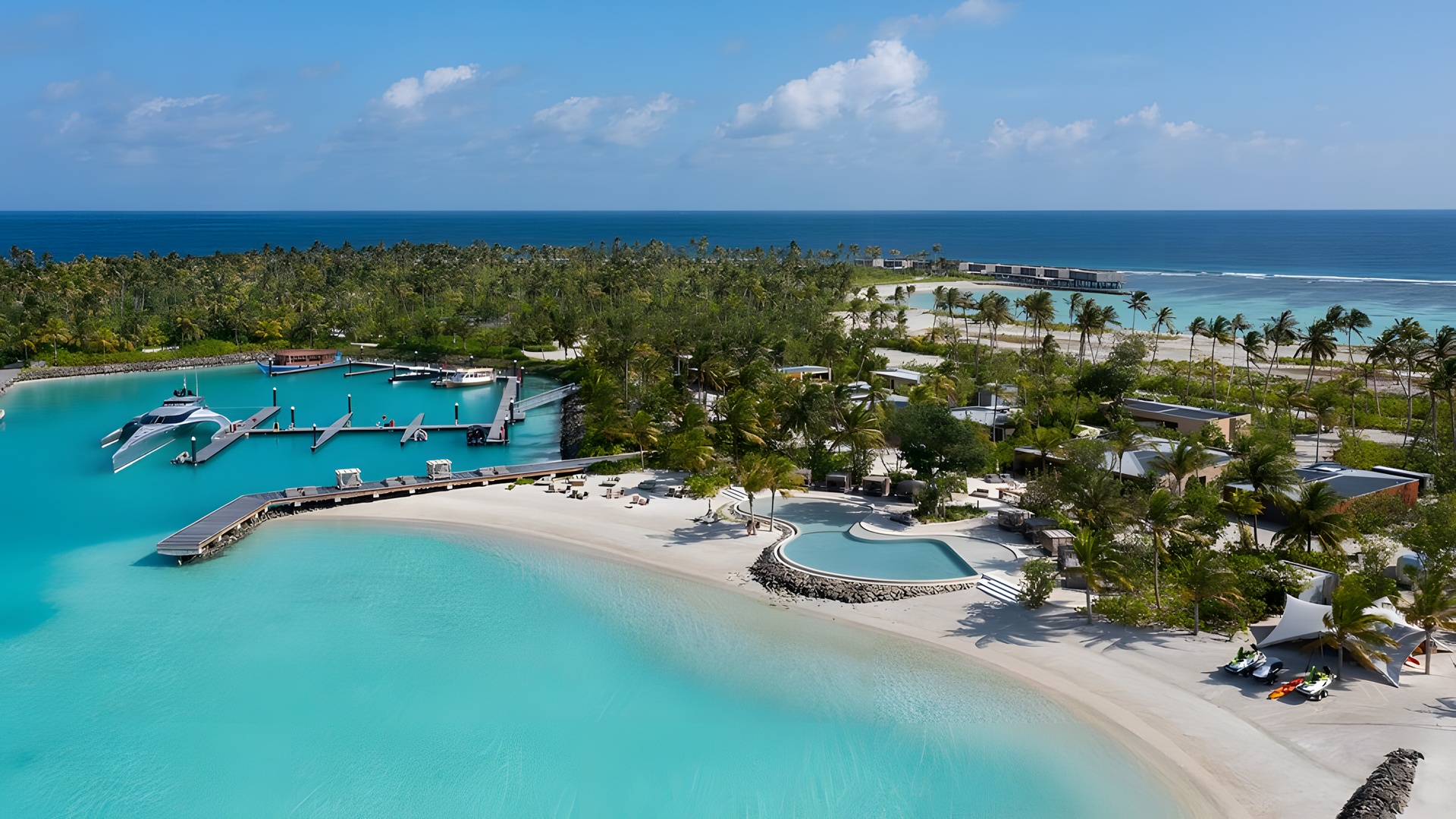 The Ritz-Carlton Maldives, Fari Islands, offers refined luxury with sleek overwater and beachfront villas featuring private pools and panoramic ocean views. The resort is known for its contemporary circular architecture, exceptional service, and tranquil atmosphere. Here, you will also get to enjoy world-class dining, including Japanese and Italian cuisine, a serene overwater spa, and a dedicated island host. Crystal-clear lagoons provide excellent snorkelling, while the Fari Marina Village adds cultural events, boutiques, and vibrant social spaces, creating a perfectly balanced luxury island escape.