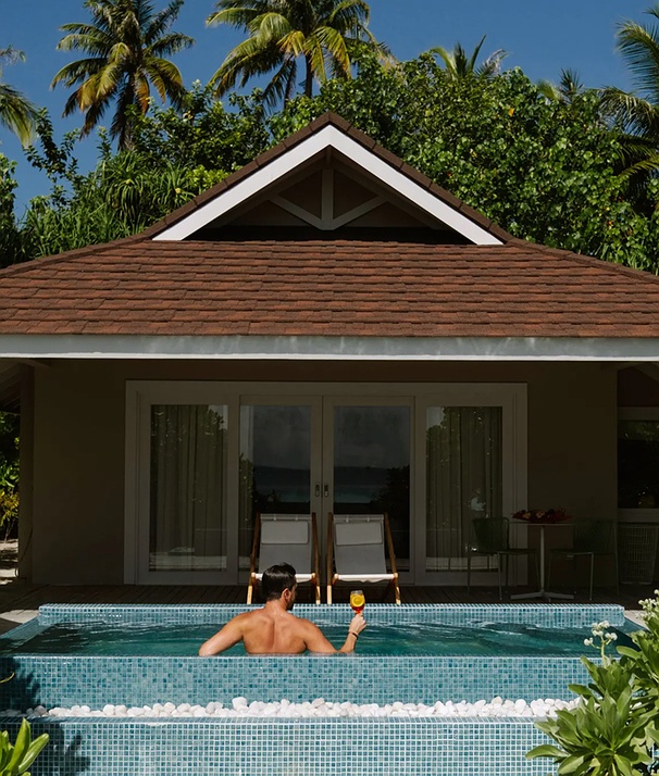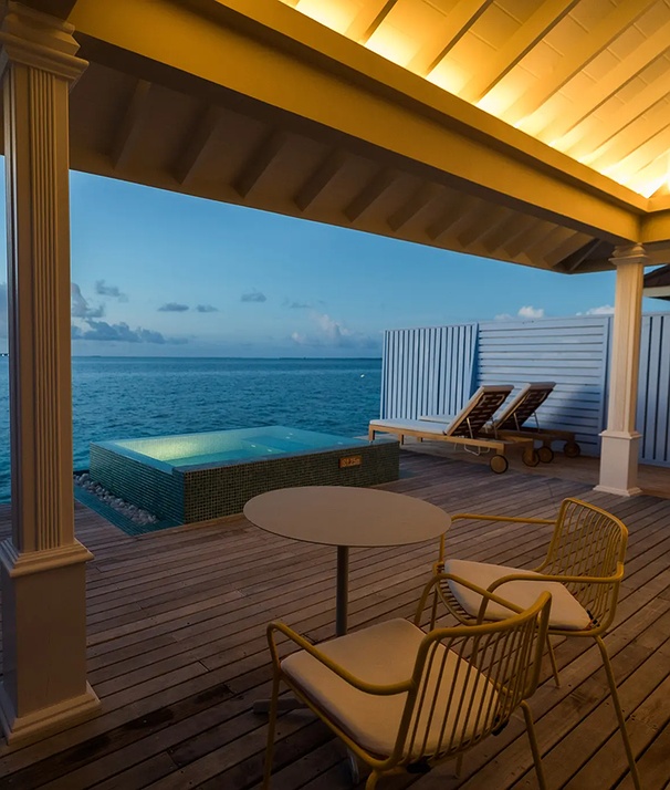 Step into your own slice of paradise where the ocean is your floor and the horizon your only neighbor. You can wake up to gentle lagoon sounds, step straight from your deck into clear, shallow waters, and spend mornings lounging in plush robes. With thoughtful comforts, relaxed luxury, and uninterrupted lagoon scenery, this villa delivers the postcard-perfect experience. Whether you are cooling off in your private pool or raiding the curated minibar, every corner is designed for effortless, sun-drenched luxury.