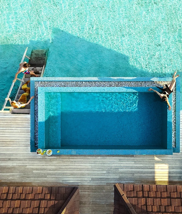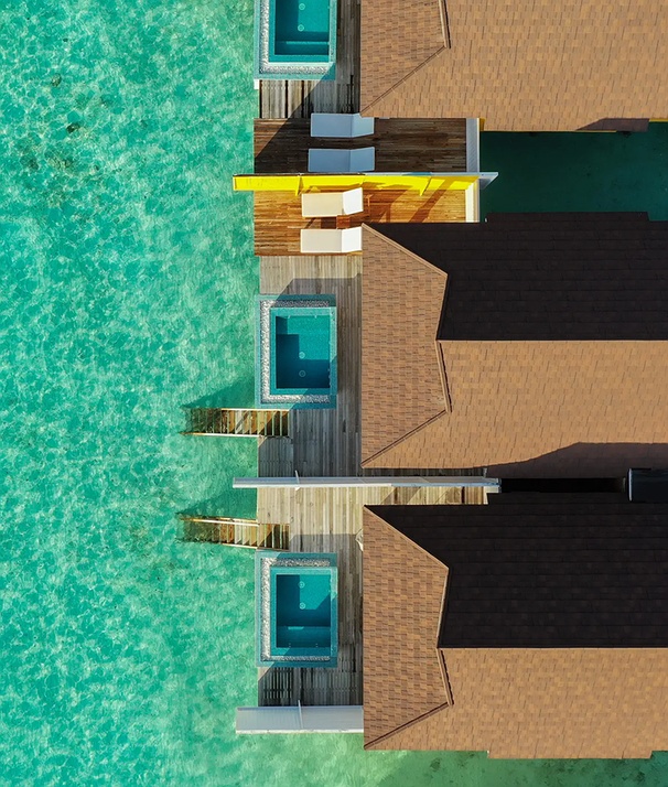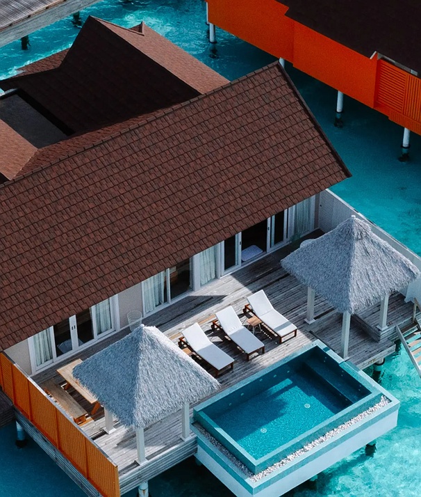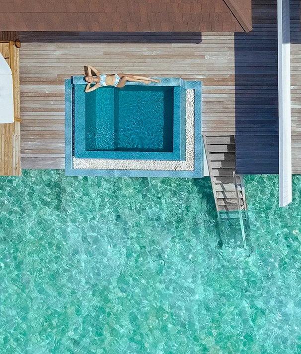 Imagine a getaway where the ocean floor becomes your living room gallery. These dual villas offer the right balance of social energy and quiet retreat, allowing you to gather for poolside laughs or slip away for a private moment. Ideal for families or friends, it blends togetherness, comfort, and unforgettable overwater living. Enjoy relaxed mornings above the lagoon, poolside afternoons on a shared deck, and magical moments watching marine life below.