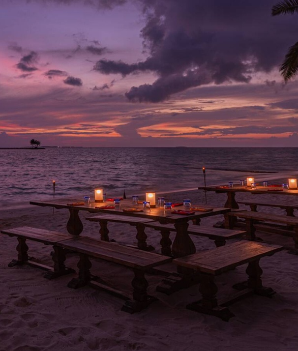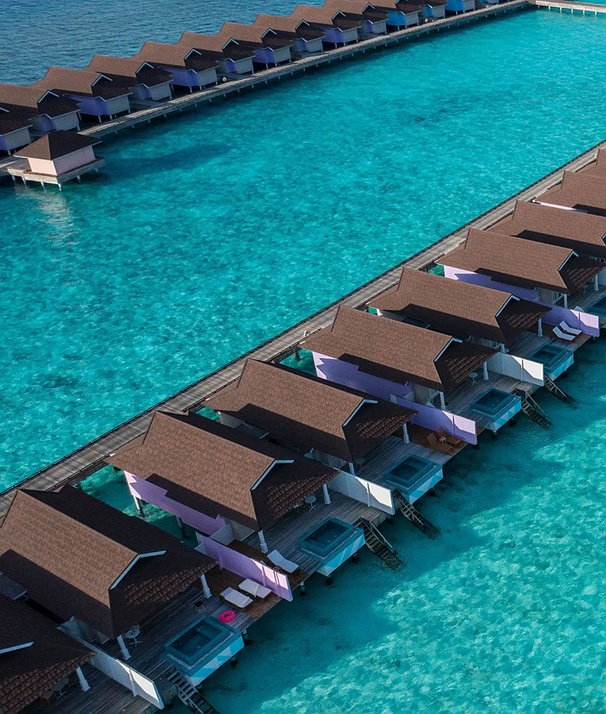 Whether you are challenging friends on the court or weaving palm fronds with local experts, there is a rhythm here for everyone. Relax into the island’s heritage by day, then stick around for the evening as the atmosphere turns electric. Join a beach bonfire to the thump of Boduberu drums, or dive into a legendary pool party where the beats match the glow. From starlit outdoor cinema to cruising on signature purple bikes, every spot on Huruvalhi sparks fresh fun.