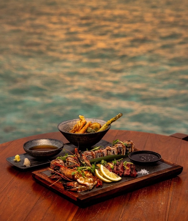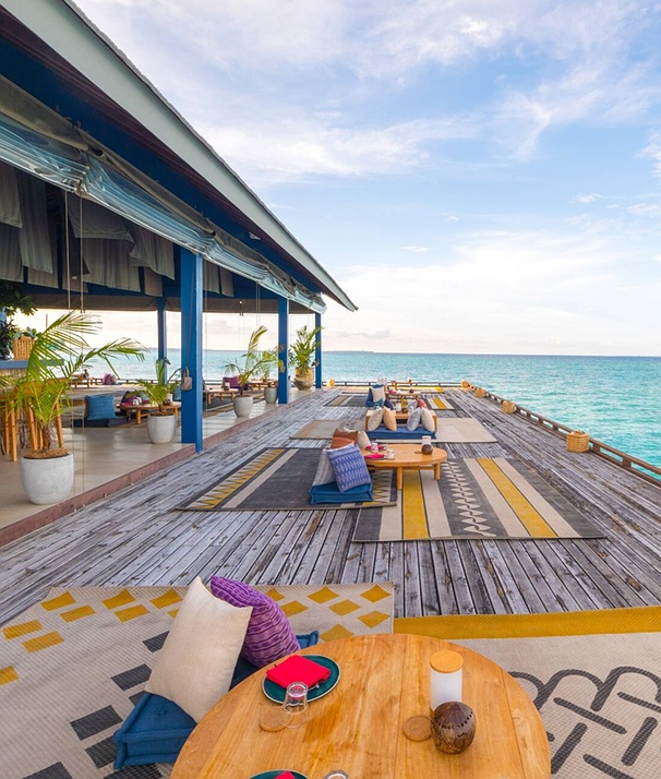 Sink into a pile of cushions and let the world slow down as you embrace the true spirit of island hospitality. Savour fresh, locally caught seafood, coconut milk curries, spiced rice, and regional fruits and veggies. Dine in traditional low-seating style, indoors or on the waterside patio. It is a culinary vibe made for long chats and real Maldivian flavours.