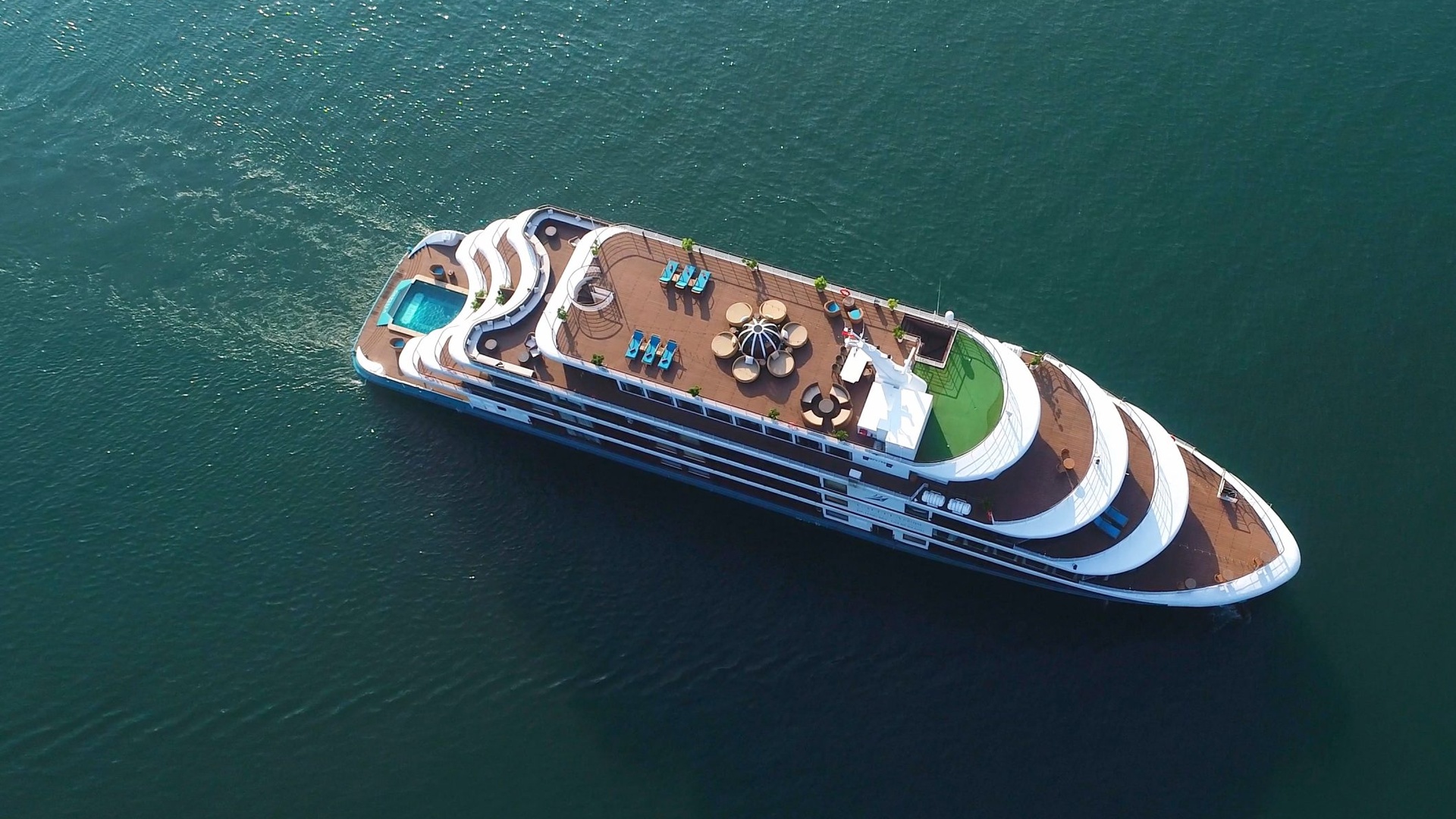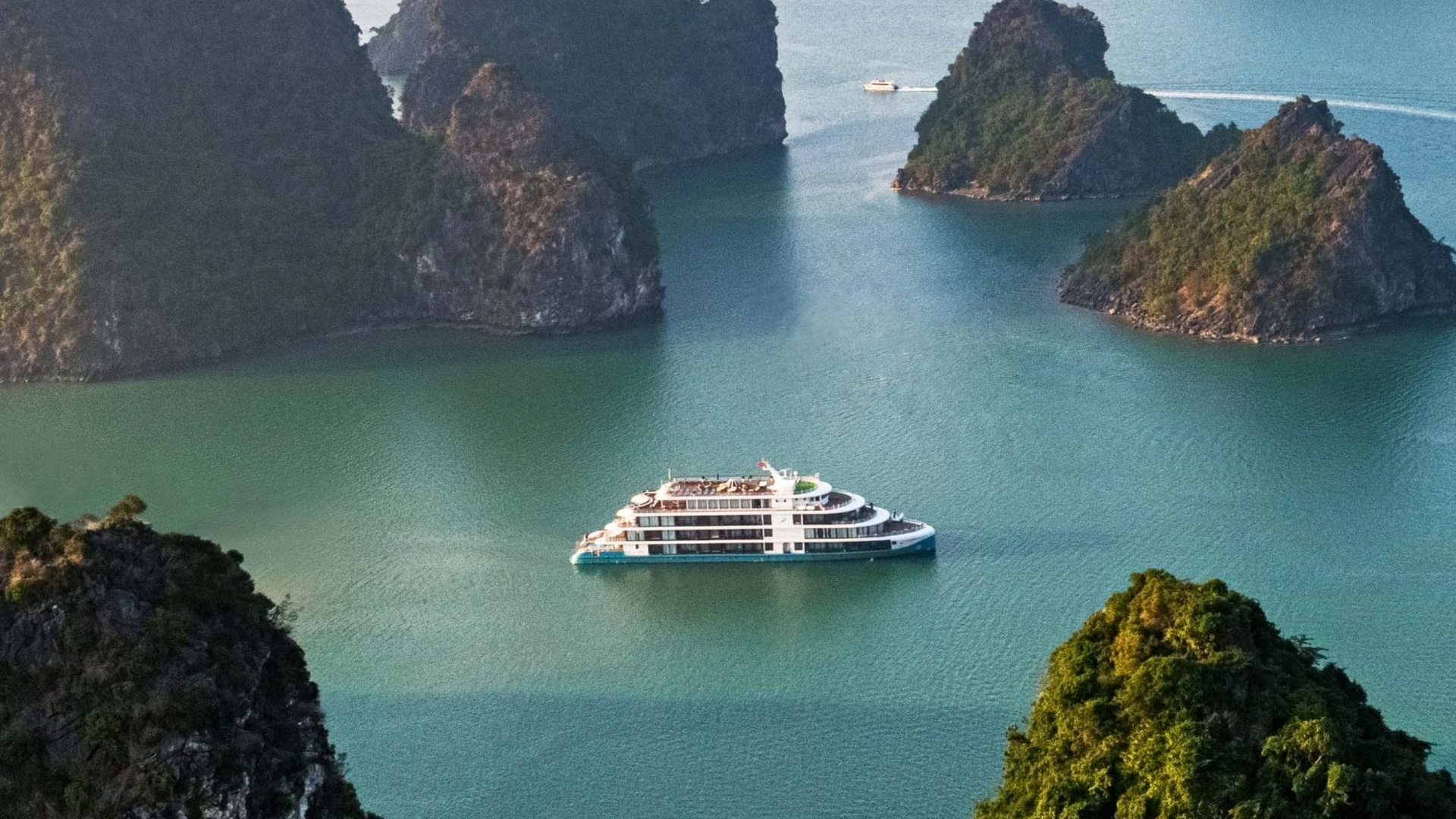 Experience the pinnacle of luxury with Capella Cruise, a sophisticated 5-star vessel navigating the tranquil waters of Halong and Lan Ha Bay. Each of the 30 spacious suites features a private balcony for uninterrupted karst views. Whether you are enjoying the heated Oasis Pool, the signature inflatable waterslide, or sunset cocktails at the lounge, it is an effortless, refined escape that perfectly blends high-end relaxation with unforgettable bay scenery.