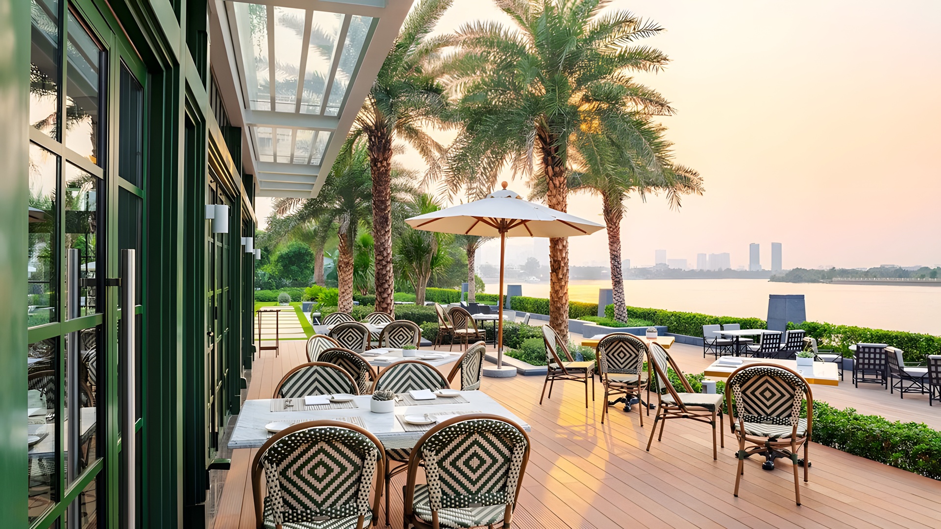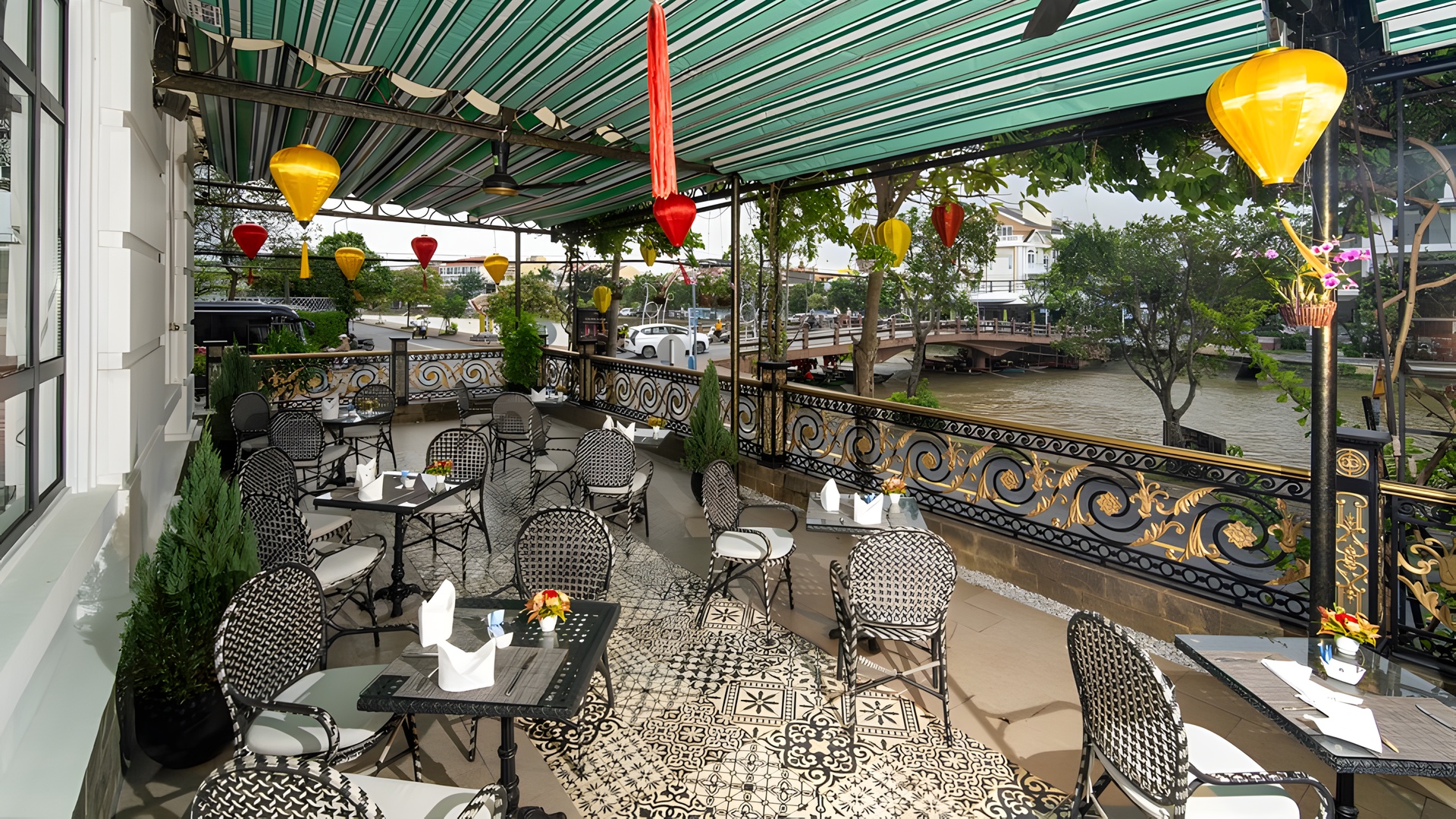 Mia Saigon Hotel is a calm, riverside retreat in District 2 (Thu Duc City). Situated on the river banks, this urban sanctuary features French Indochine charm blended with 1920s Art Deco style. Its 53 elegant rooms house private balconies and stunning water views. Beyond the jewel-toned interiors, you can lounge by the city’s largest outdoor saltwater pool or dine at Kitchen By The River. Just 35 to 40 minutes (14 km) from Tan Son Nhat International Airport (SGN), the hotel even offers a signature Mia boat for a scenic arrival.