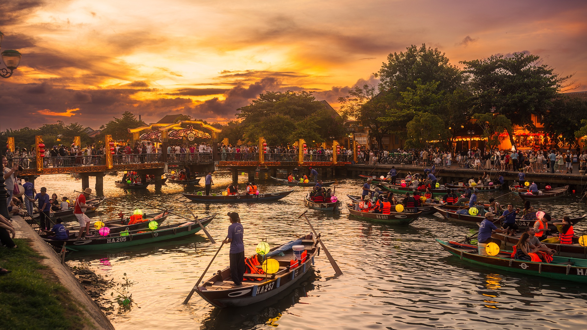 Your days will be filled with sensory wonders. Beyond the iconic Japanese Covered Bridge and the 200-year-old Tan Ky Old House, you will embark on a scenic cruise along the Thu Bon River toward the Cua Dai estuary. You will explore the vibrant Duy Hai Fish Market and visit the historic Cua Khe village to witness the ancient craft of fish sauce making. The journey will then continue to the Sampan Vietnam Rhum distillery for a refreshing cocktail and a tasting of high-quality white rums. Besides, you can shop for world-class custom tailoring, join a lantern-making workshop, or cycle to An Bang Beach for some fun. You can explore the Night Market or take a traditional sampan boat ride to release a floating candle on the river.